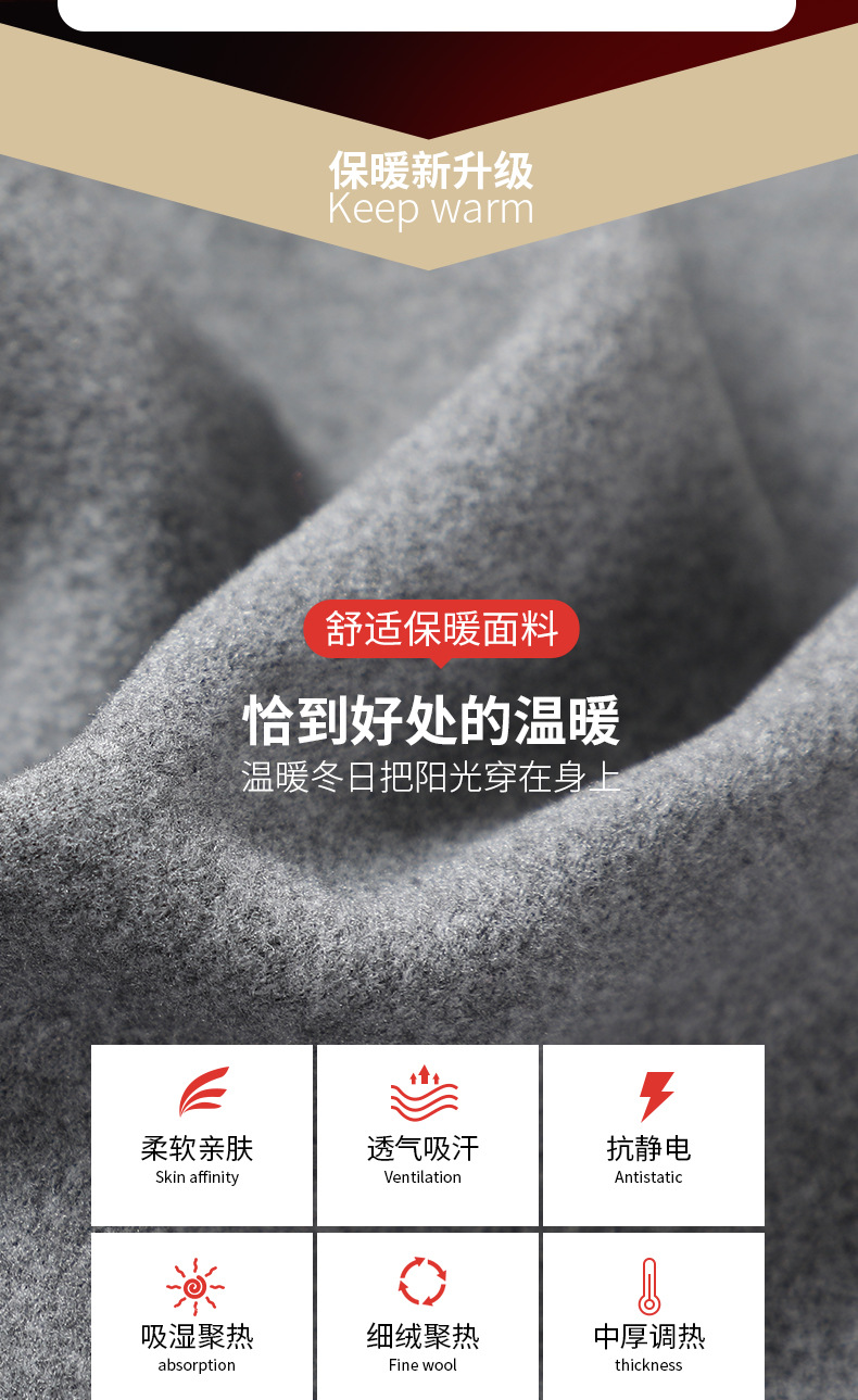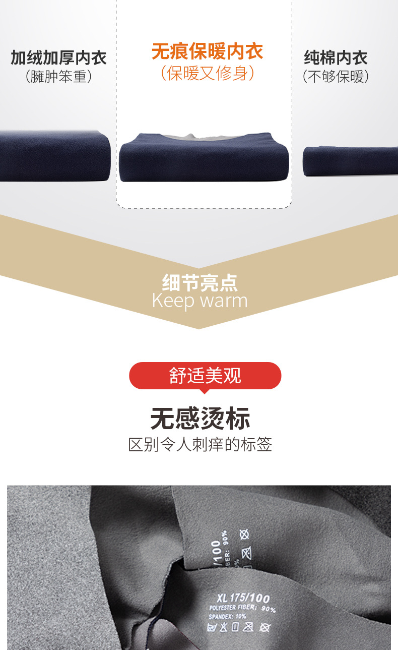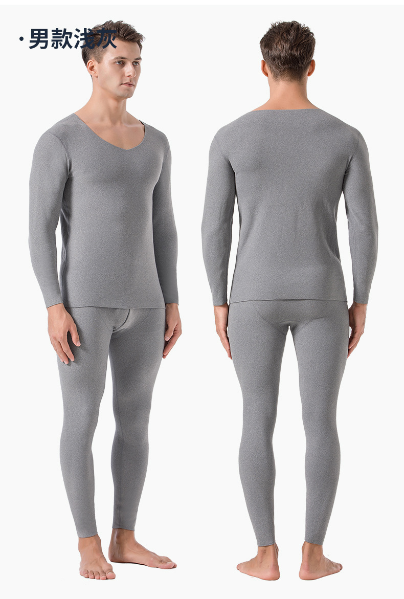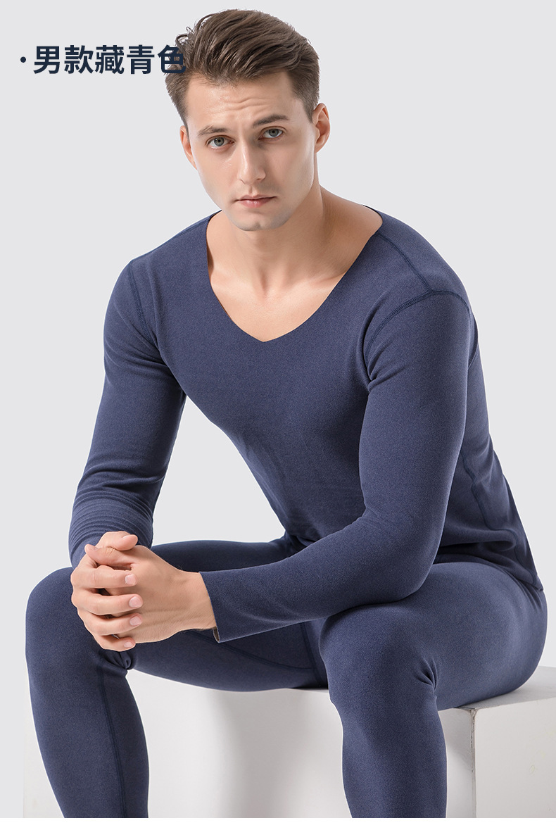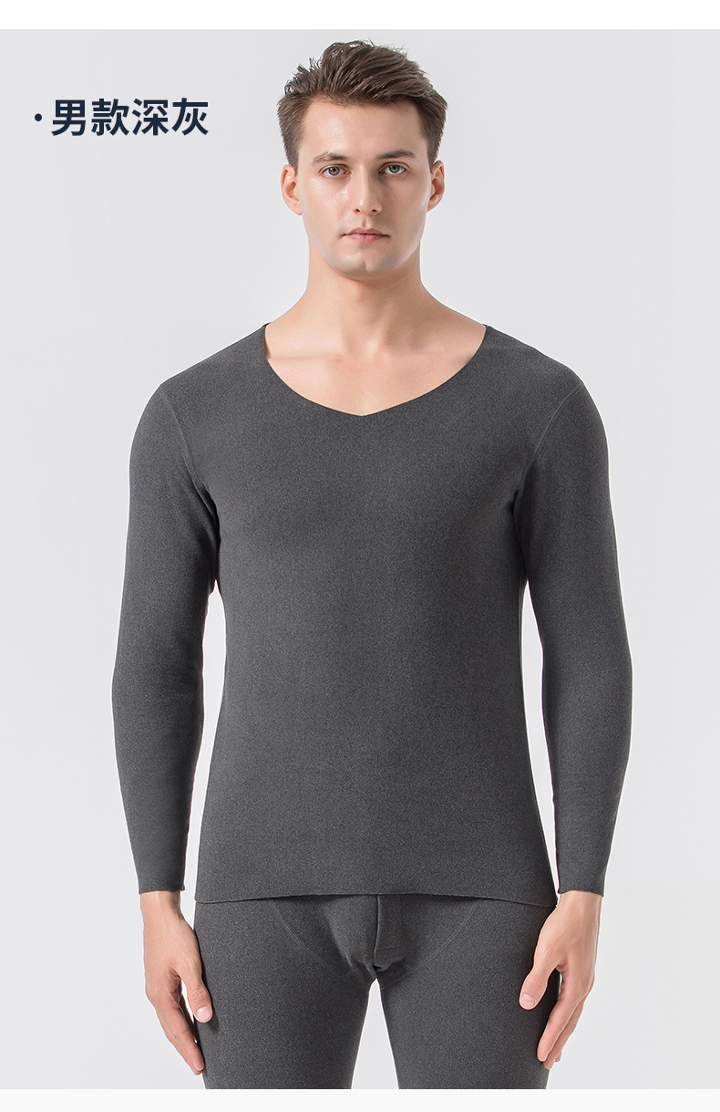 海谜璃新款无痕德绒保暖内衣女套装双色加绒加厚恒温发热男士秋衣秋裤HBF2822 黑色男 XXXL