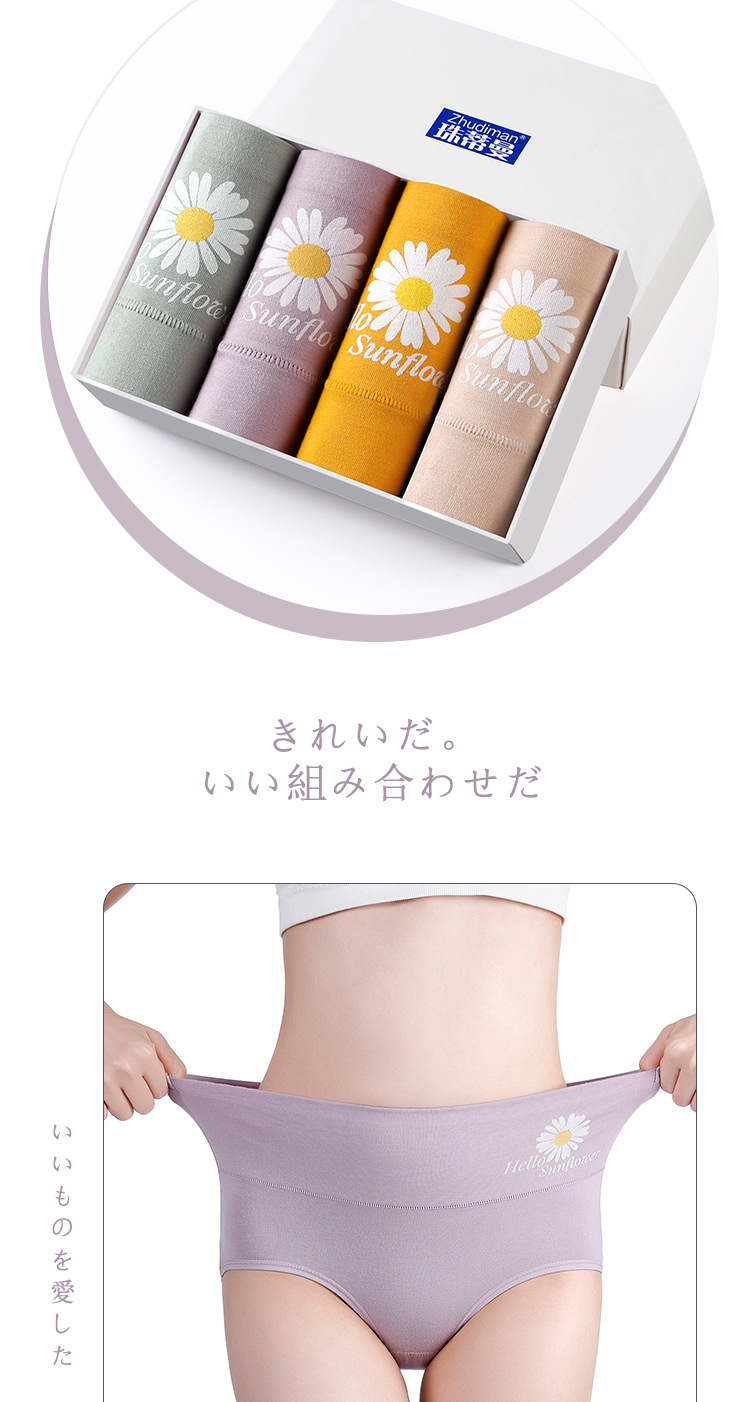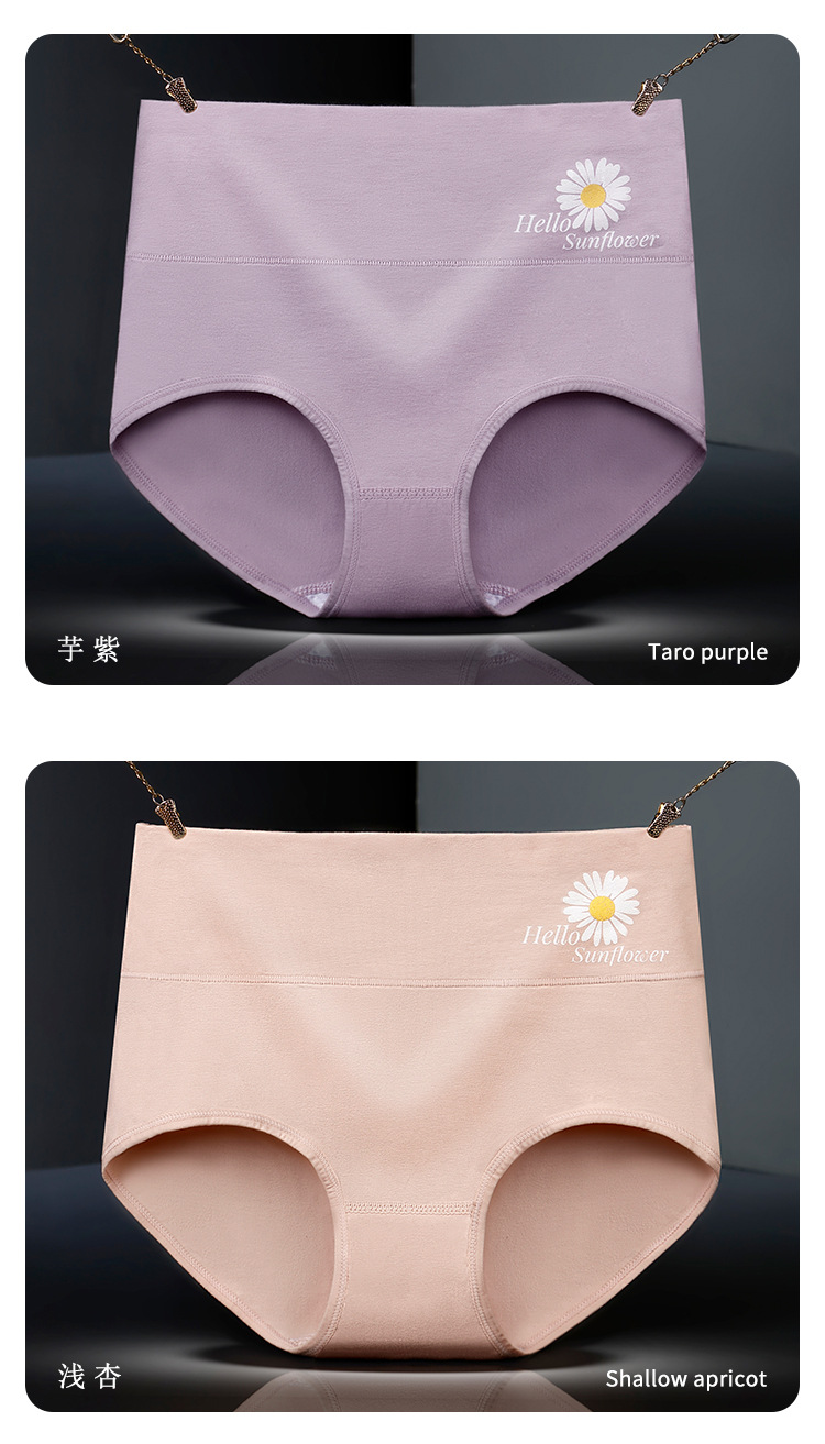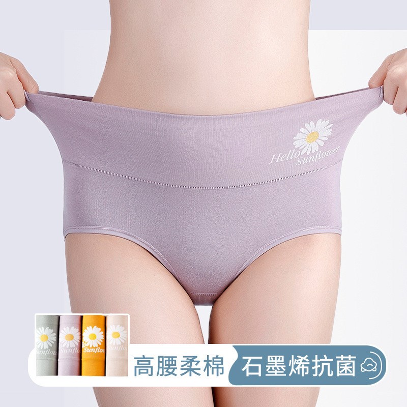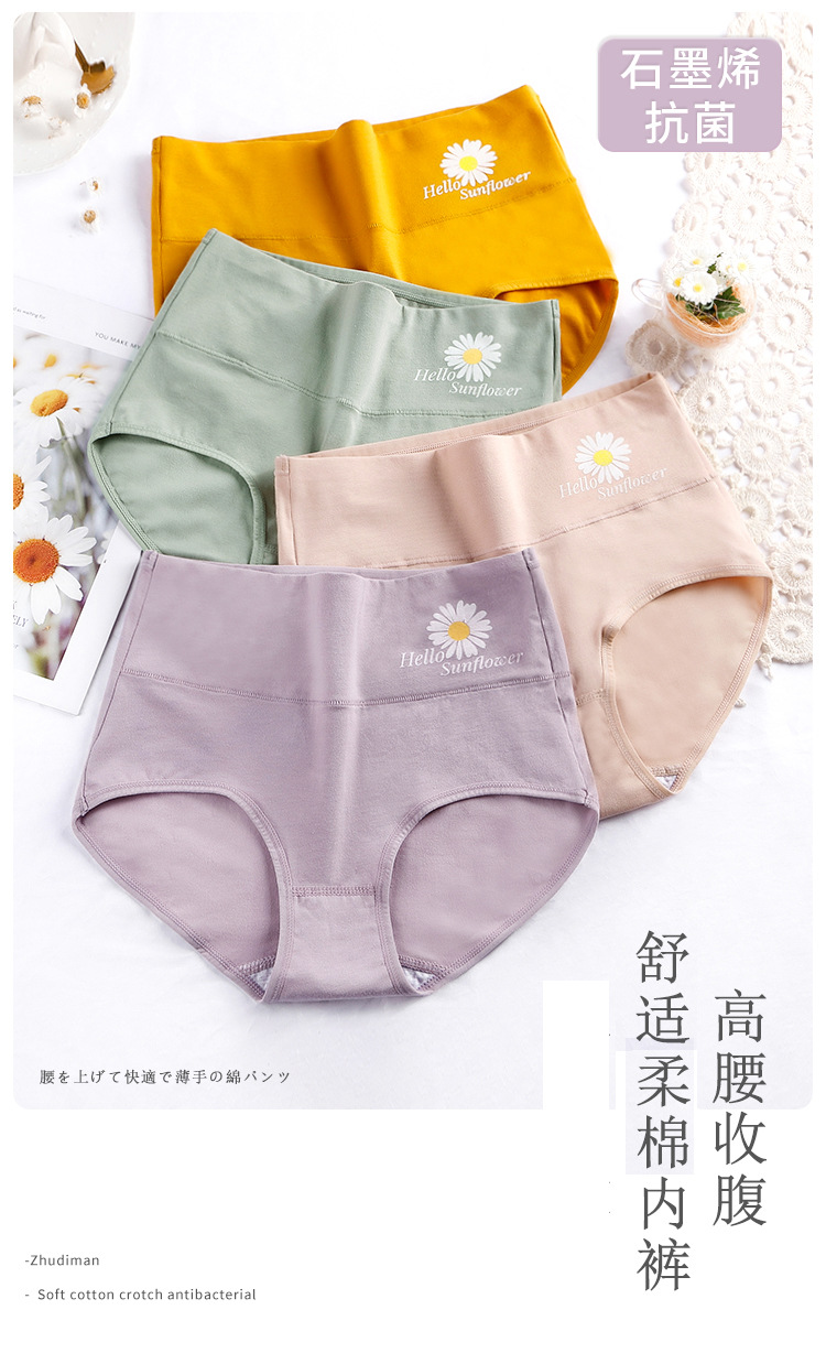 海谜璃【4条装】石墨稀抗菌内裤 小雏菊印花女士内裤 纯棉印花高腰收腹内裤HBF2769 随机色 XXL