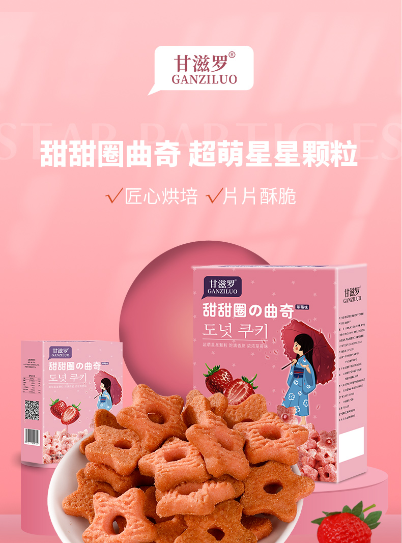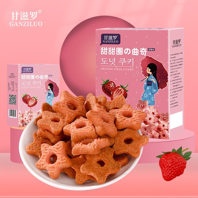 甘滋罗甜甜圈曲奇饼干(草莓味)150g/盒 1盒/6小袋