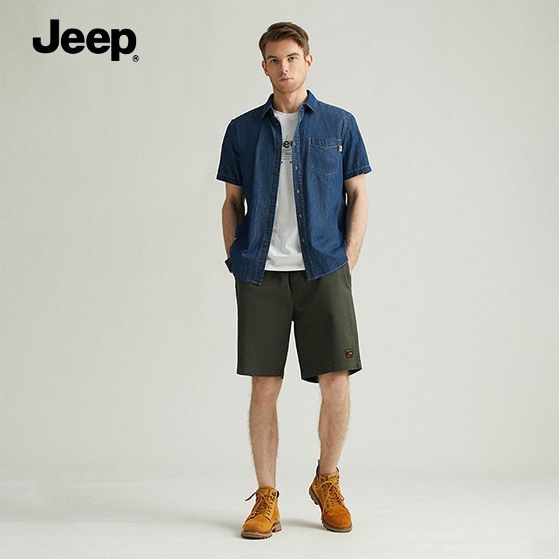 JEEP 运动短裤男夏季新款男士外穿宽松直筒潮流百搭休闲松紧带短裤P222MWP239