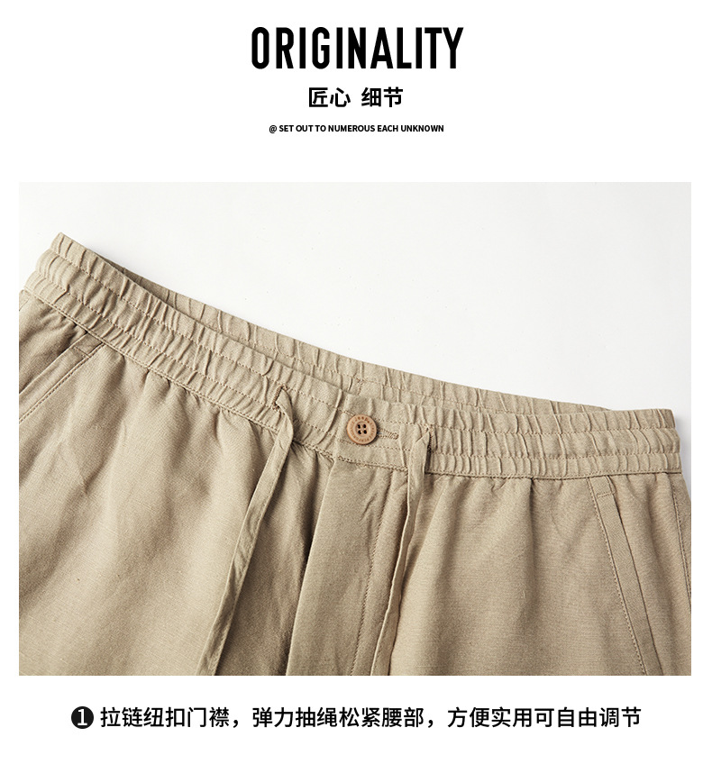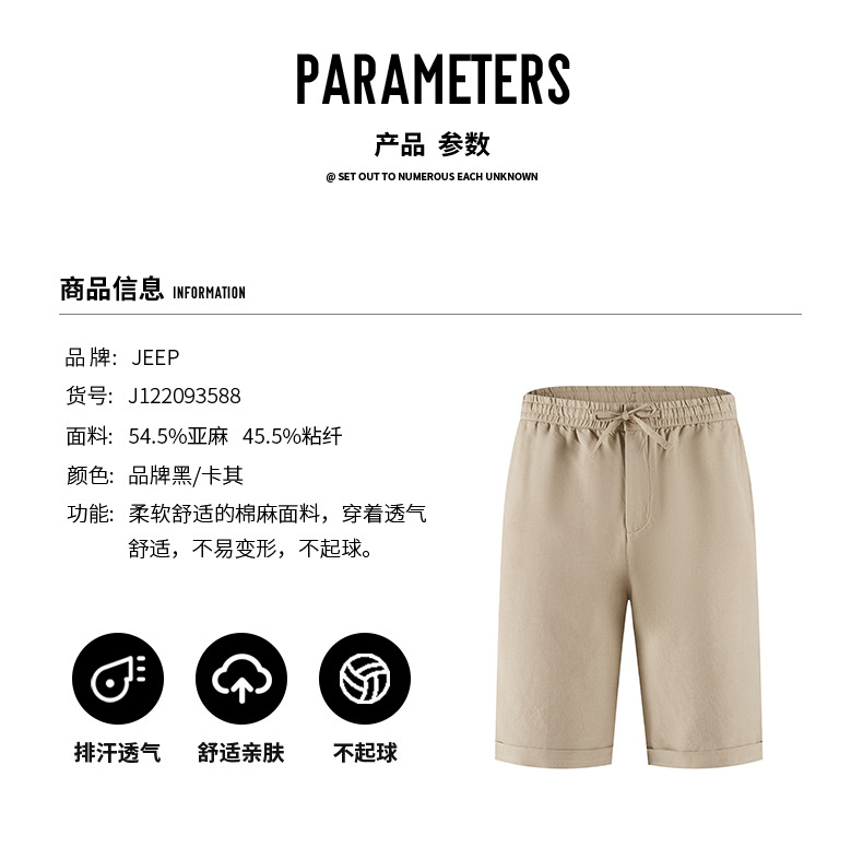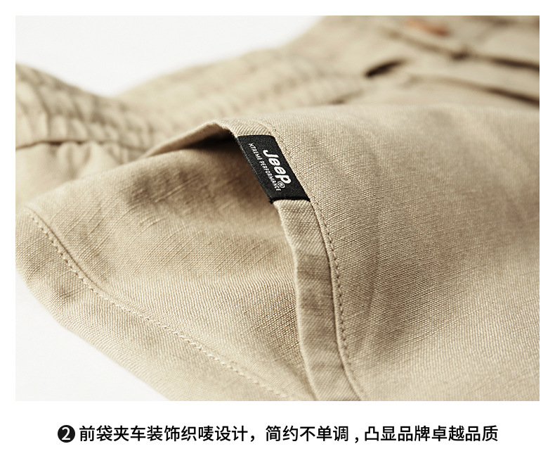 JEEP 新款休闲裤男夏季潮流直筒短裤亚麻舒适裤男士百搭短裤子男J122093588