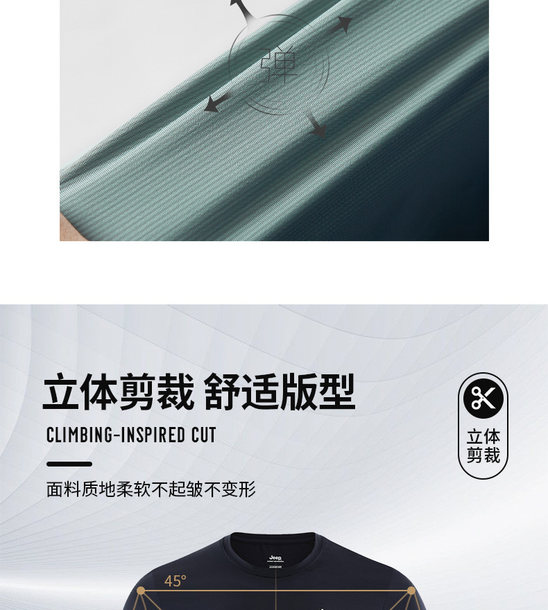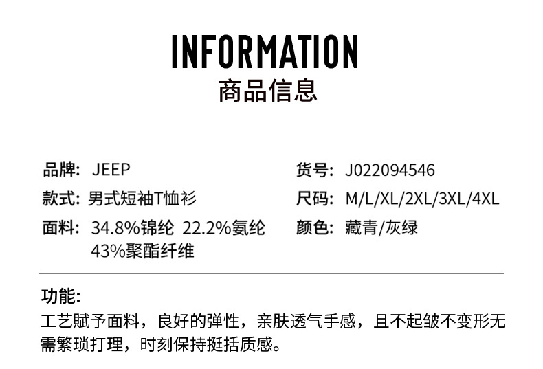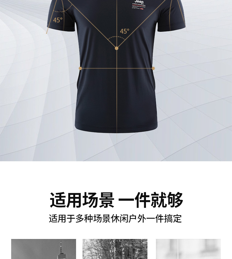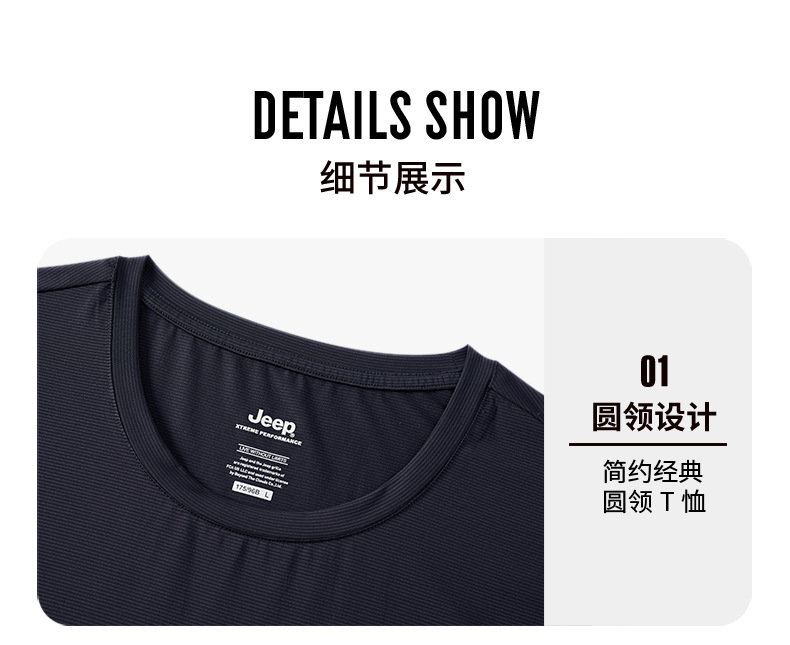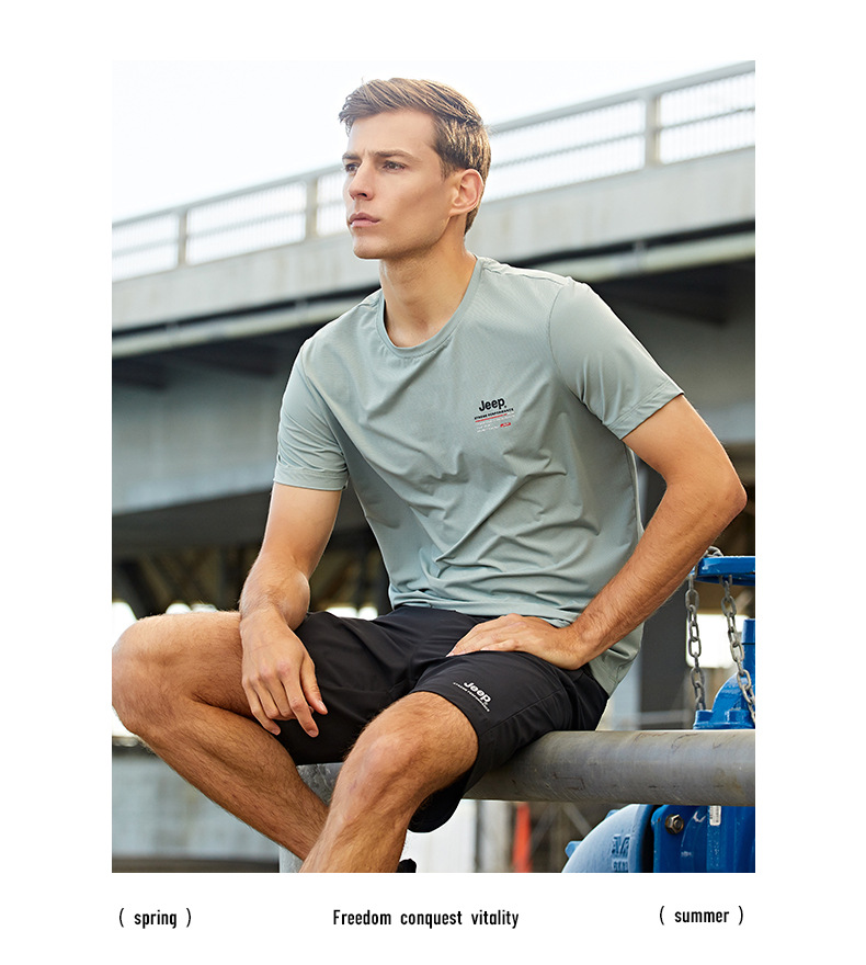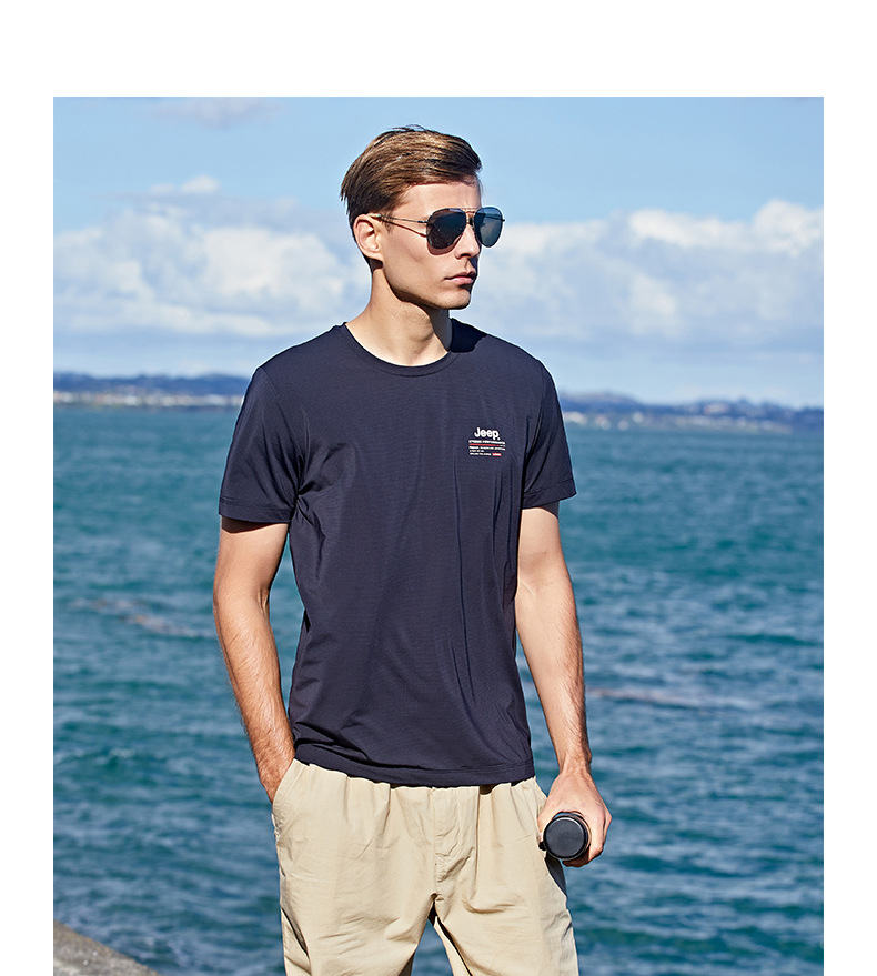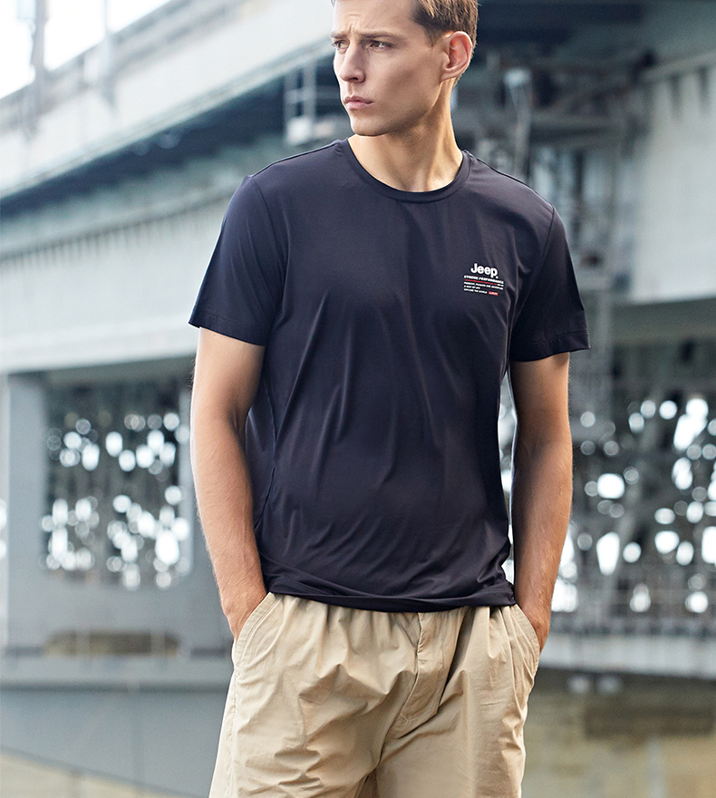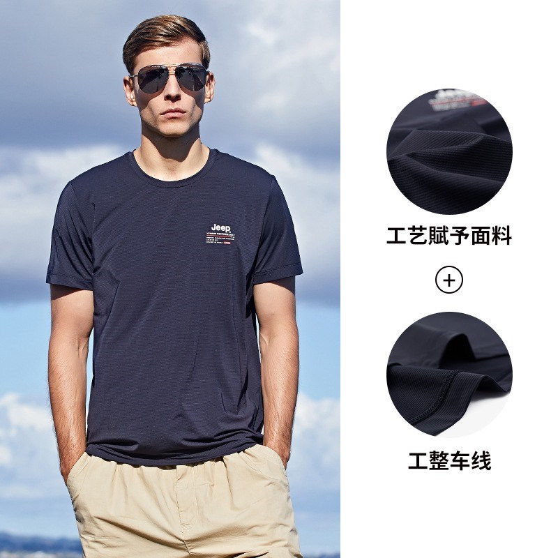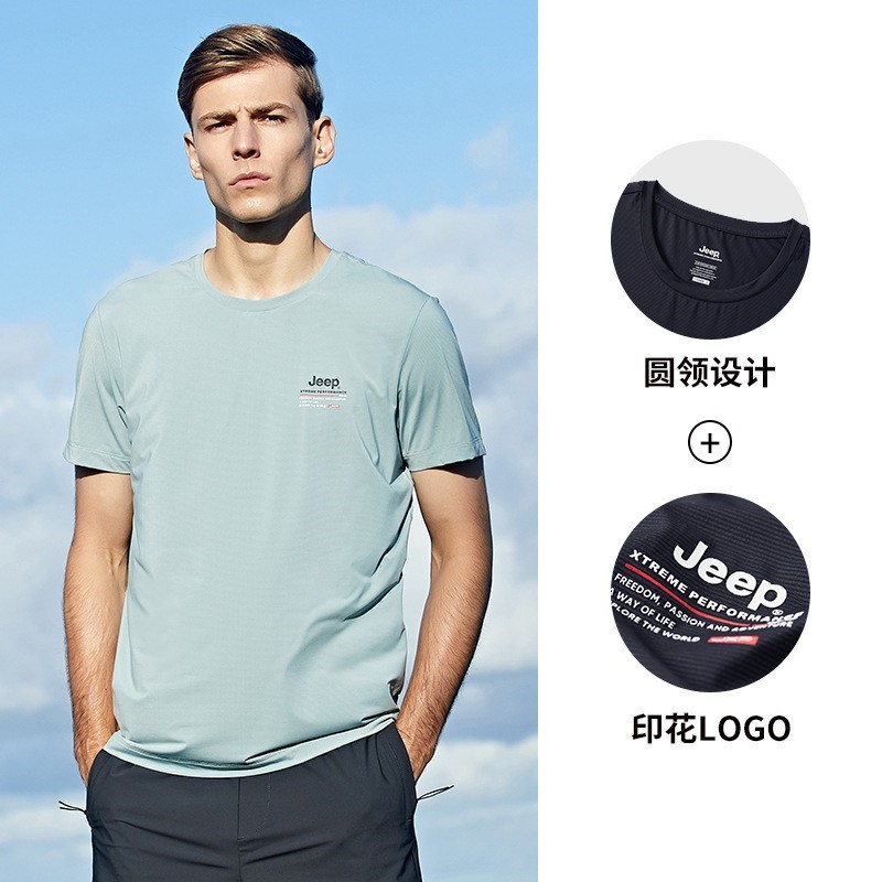 JEEP 运动t恤男春季夏季新款宽松经典休闲上衣男圆领轻薄透气短袖J122094546