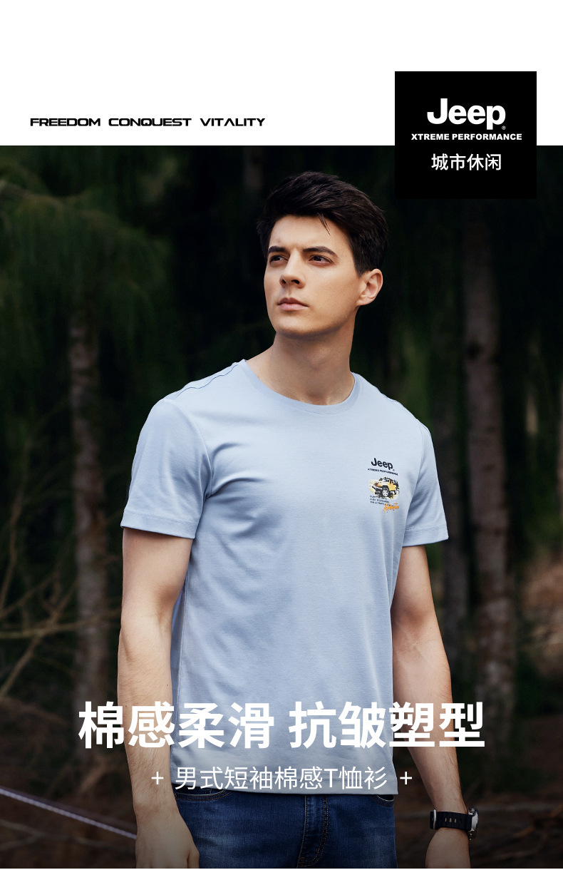 JEEP 短袖男士春季夏季合身T恤时尚百搭上衣男透气舒适简约单穿潮J222094566