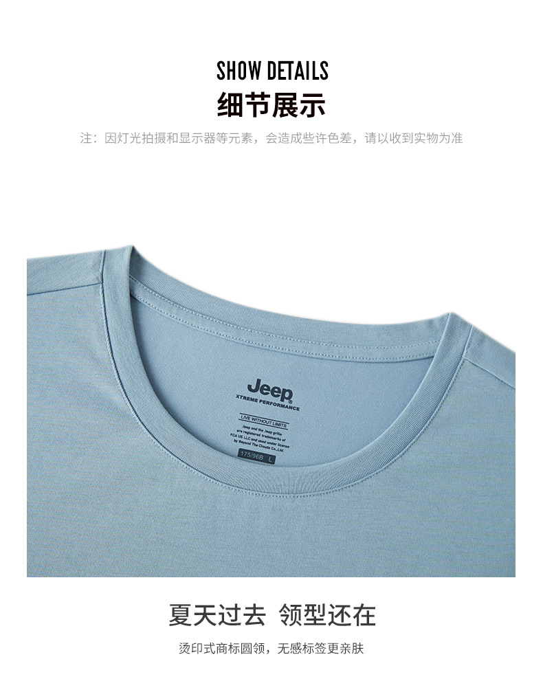 JEEP 百搭新款纯色宽松春夏短袖打底衫T恤男士体恤潮短袖衣服单穿J222094570
