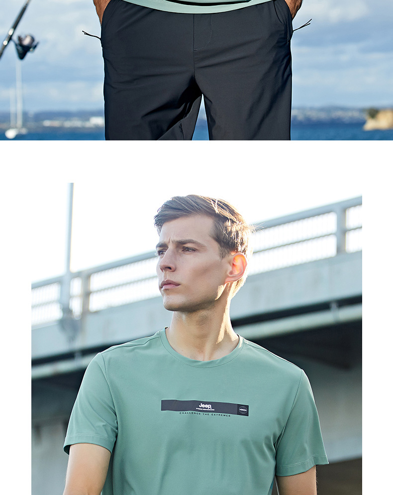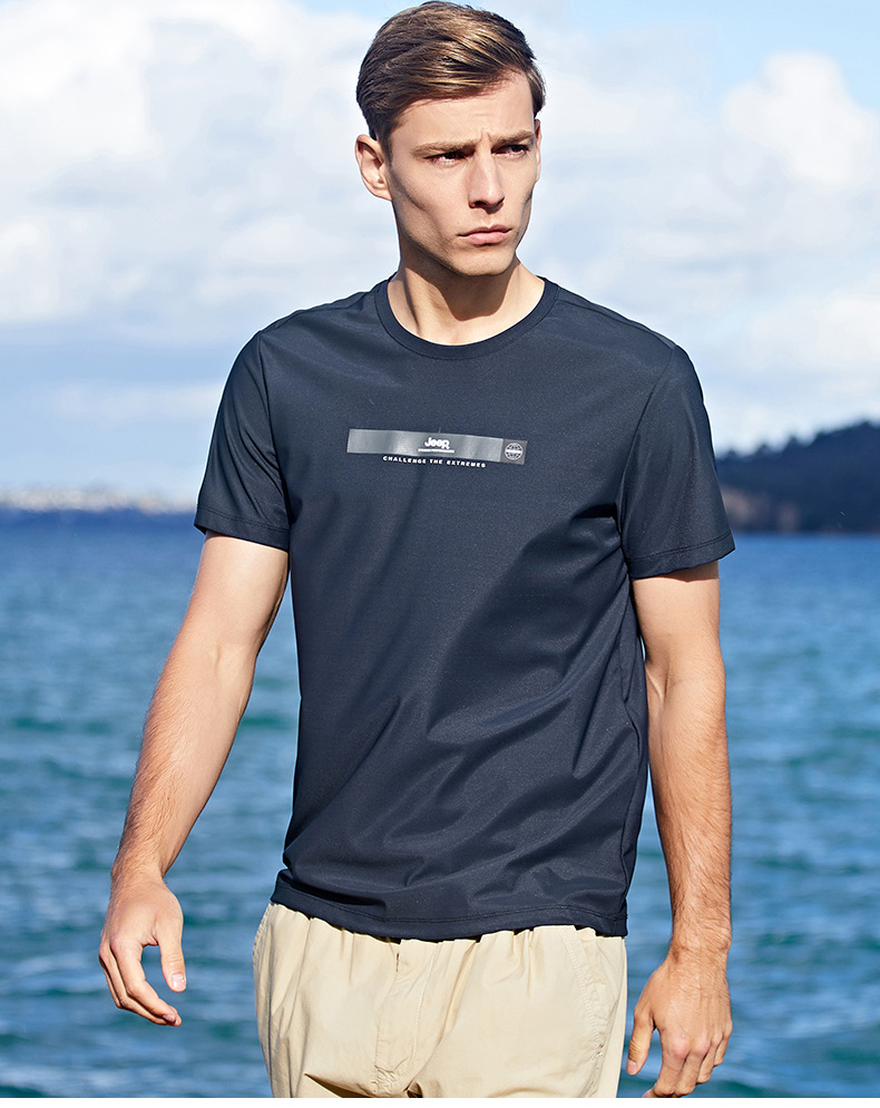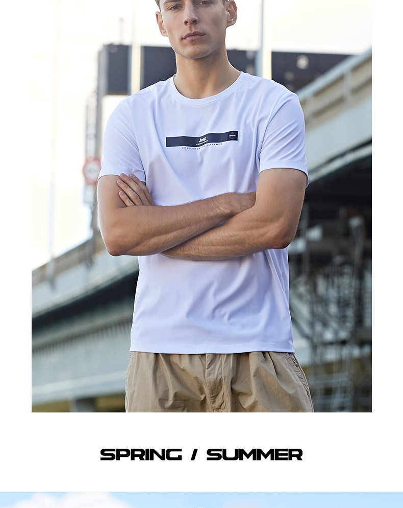 JEEP 春夏季新款圆领冰感弹力简约T恤透气短袖男士户外运动衣男装J122094566