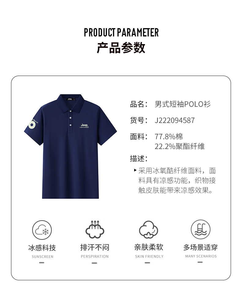 JEEP 新款夏春季节百搭合身短袖T恤男体恤潮短袖时尚简约POLO衫J222094587