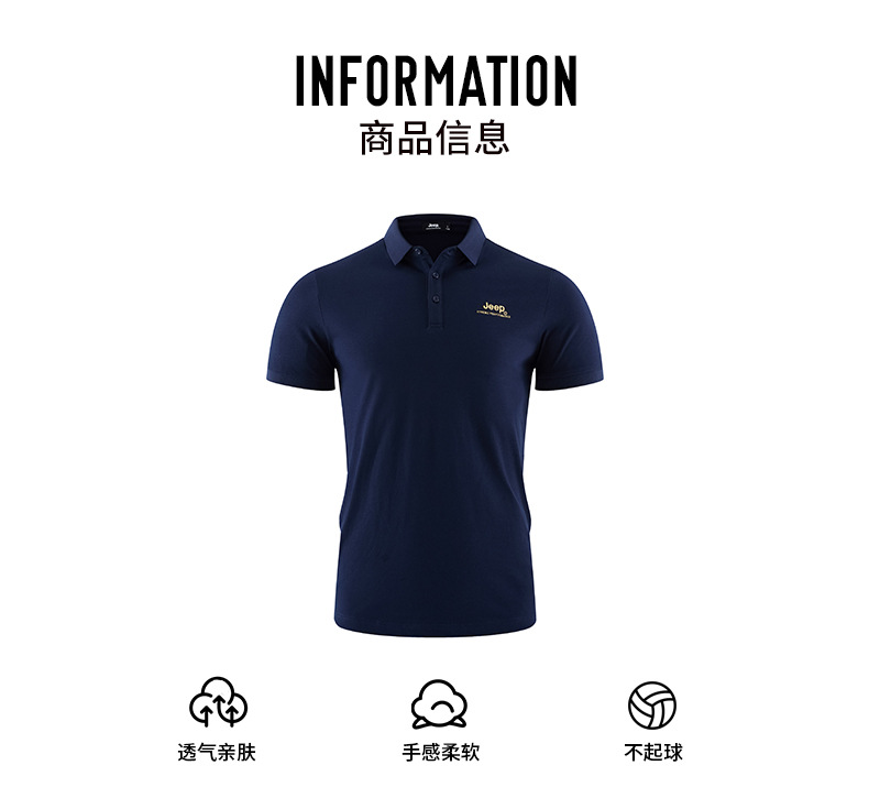 JEEP polo衫男短袖春秋季透气运动体恤休闲男装速干翻领T恤J122094580