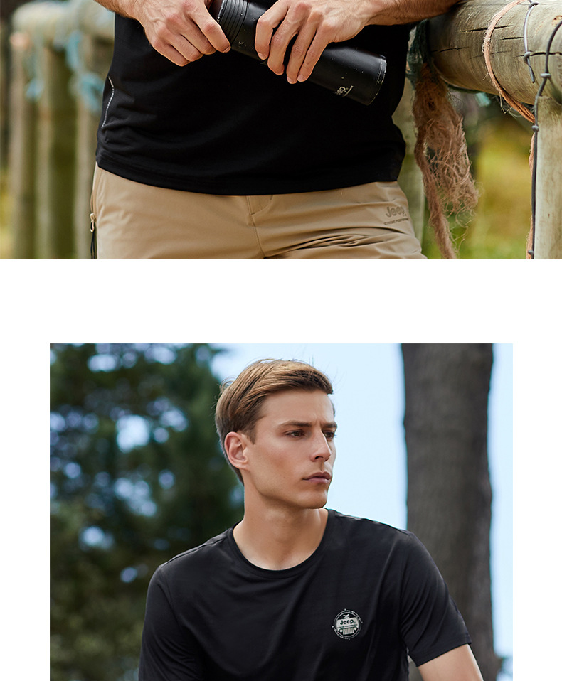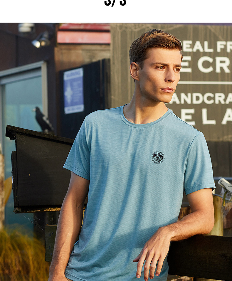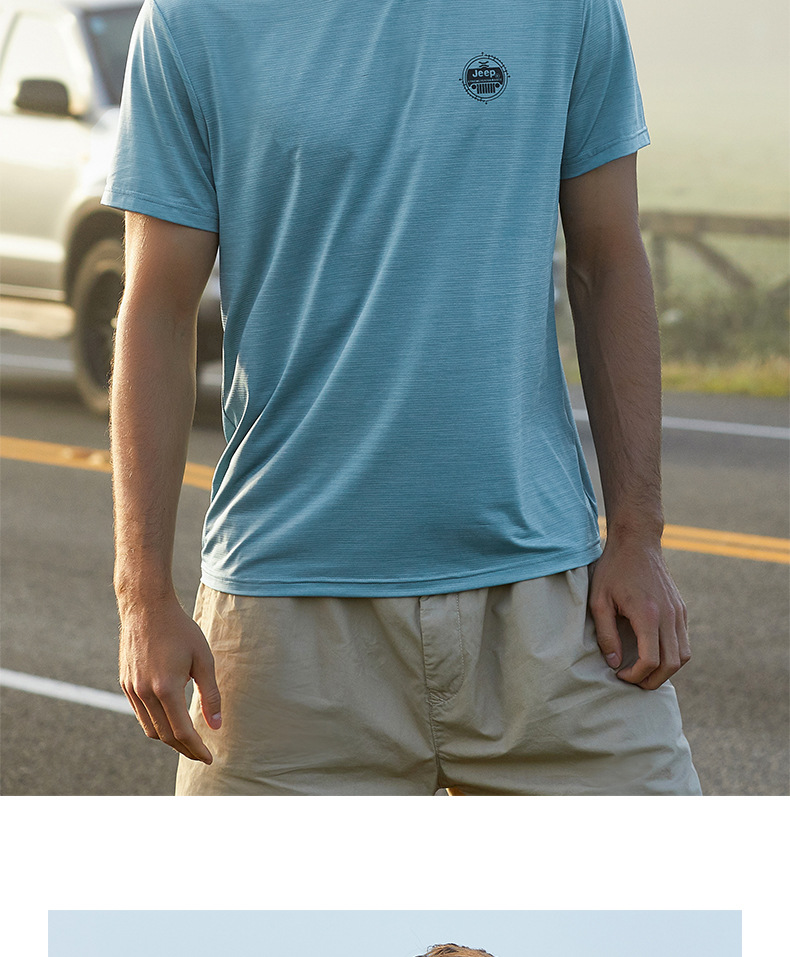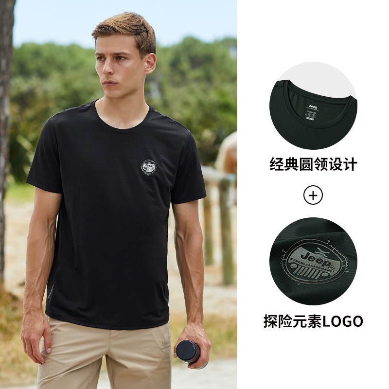 JEEP 新款户外运动夏季短袖t恤男棉质透气吸汗圆领宽松运动体恤衫J122094571