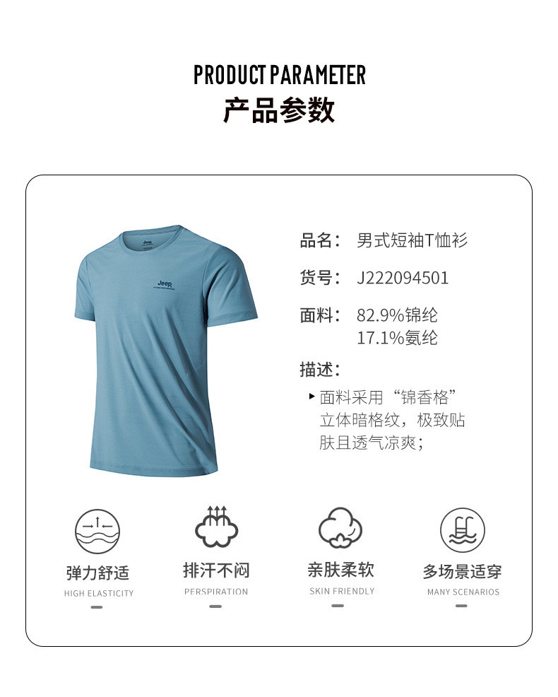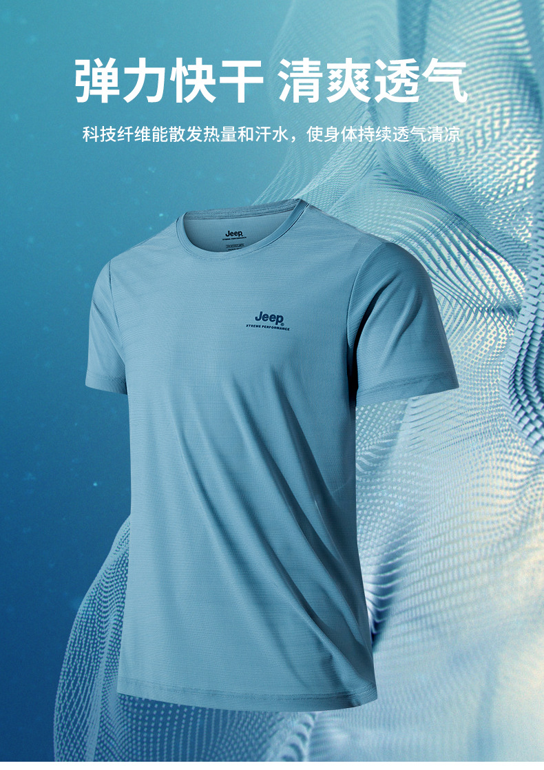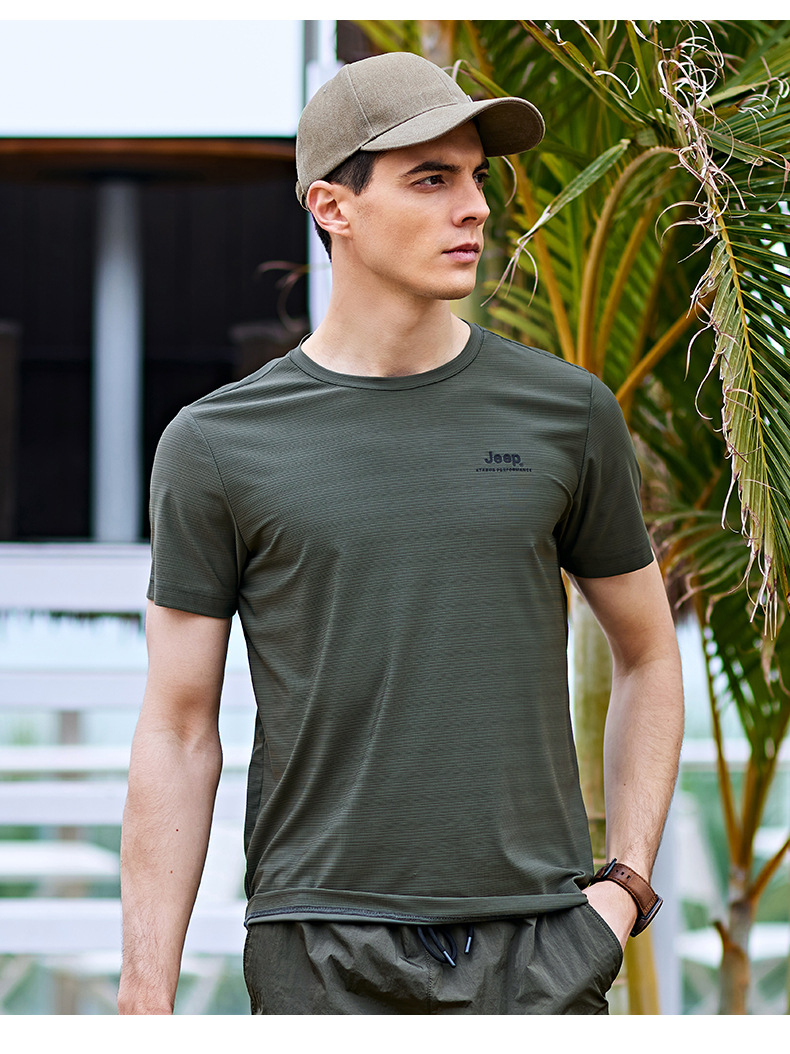 JEEP 春夏新款短袖t恤男士时尚内搭上衣运动休闲加大码体恤潮单穿 J222094501