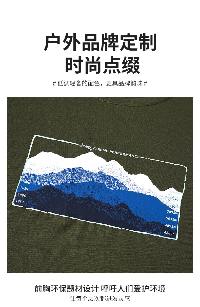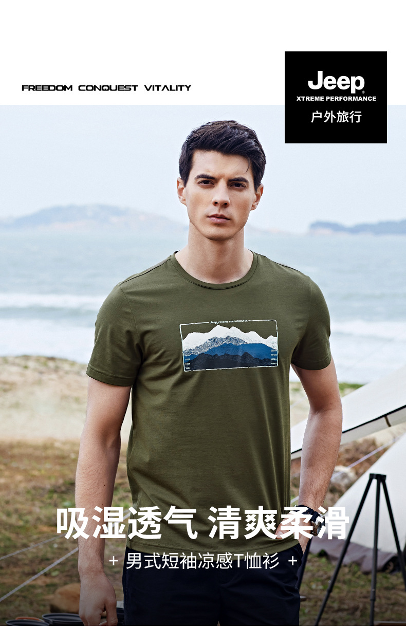 JEEP 短袖t恤男士新款夏季舒适透气休闲百搭圆领简约百搭上衣潮 J222094507