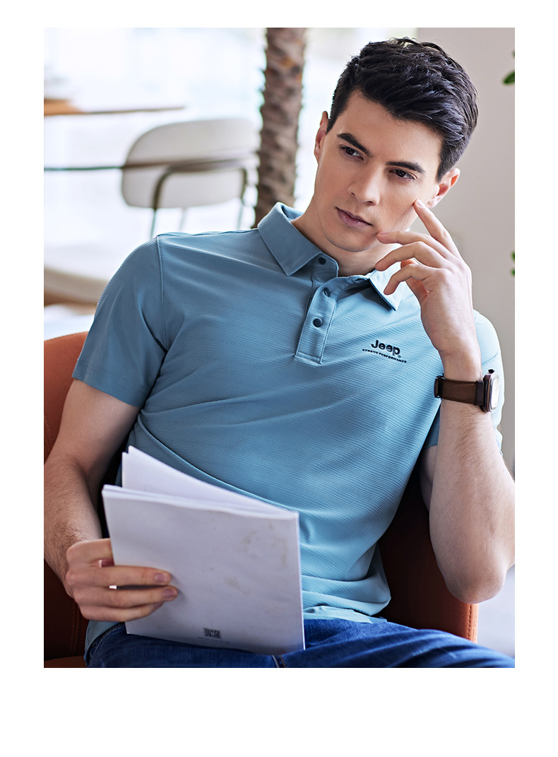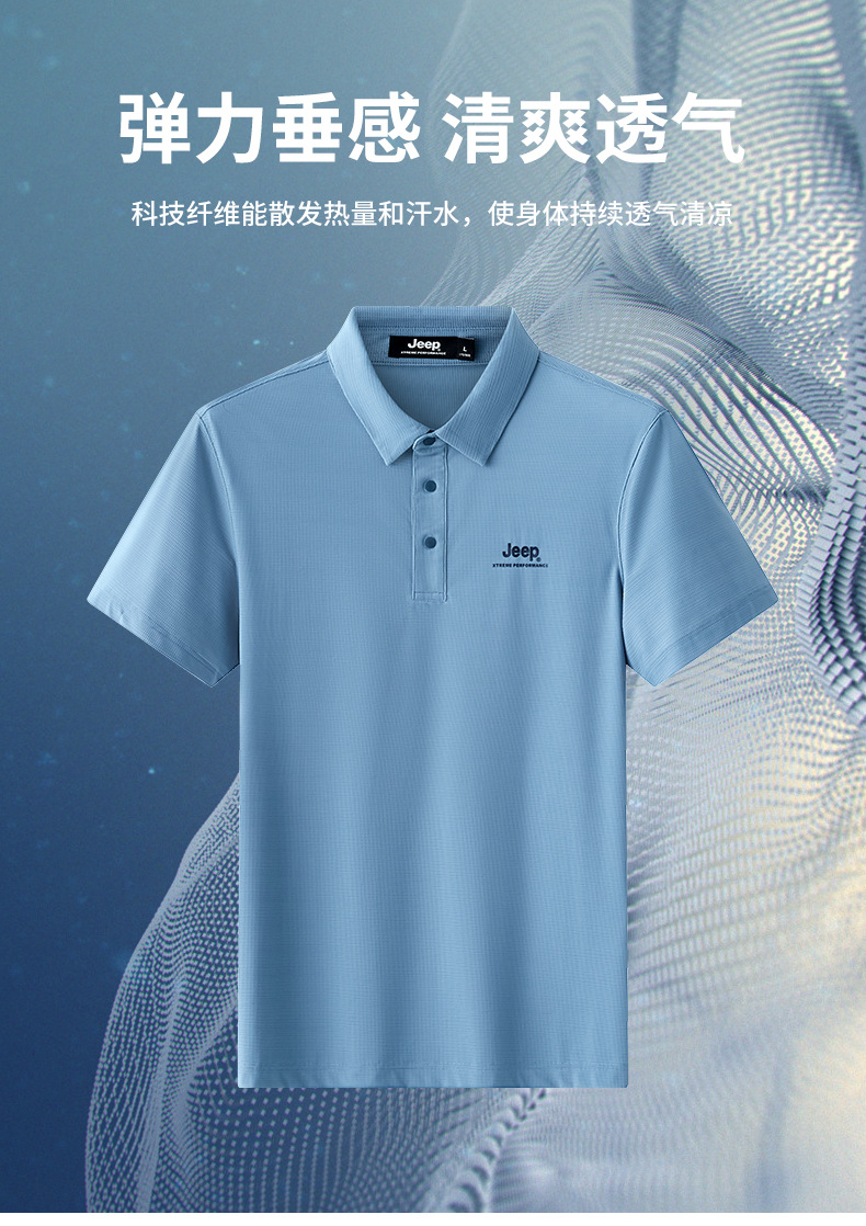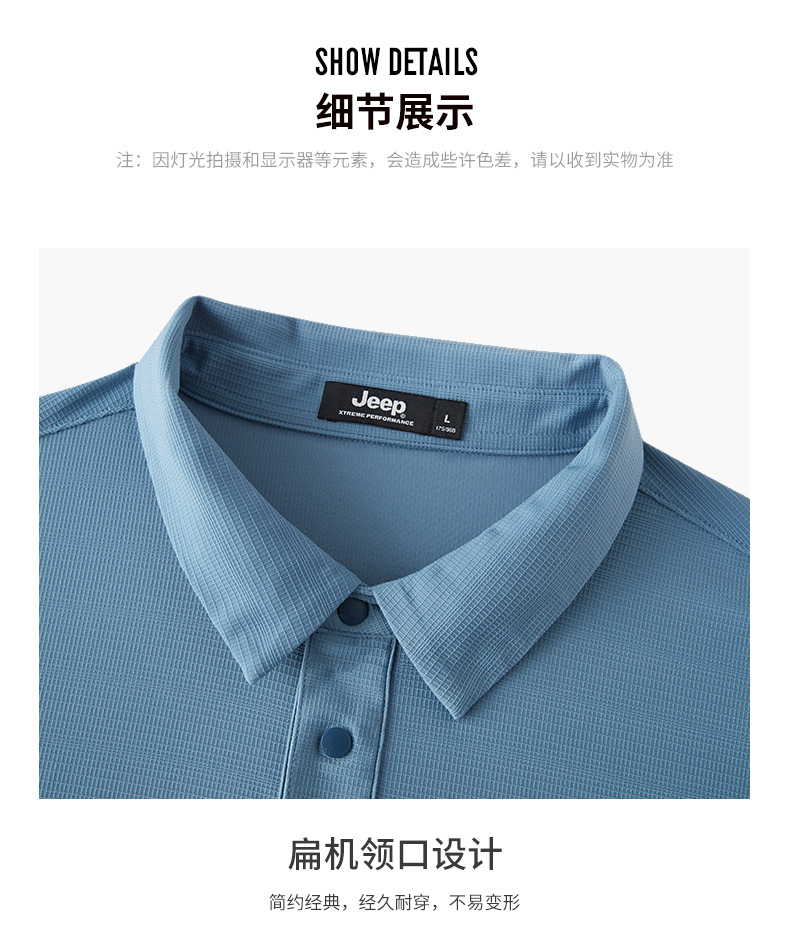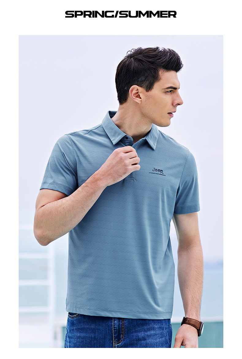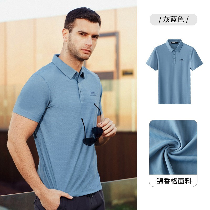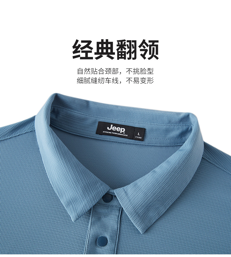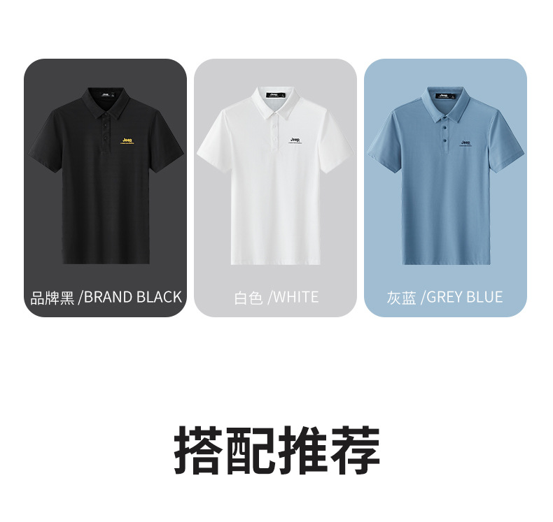 JEEP 短袖t恤男新款夏季休闲百搭纯色POLO衫轻商务圆领简约上衣J222094517