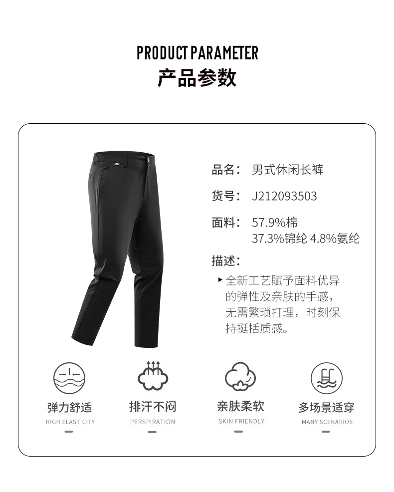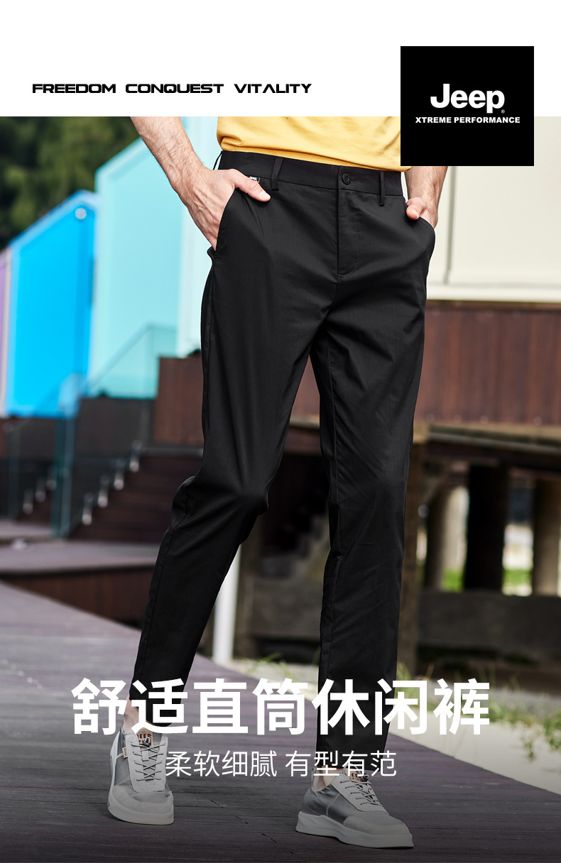 JEEP 户外休闲男裤男士春夏季新款运动潮流百搭直筒裤修身弹力舒适长裤J212093503