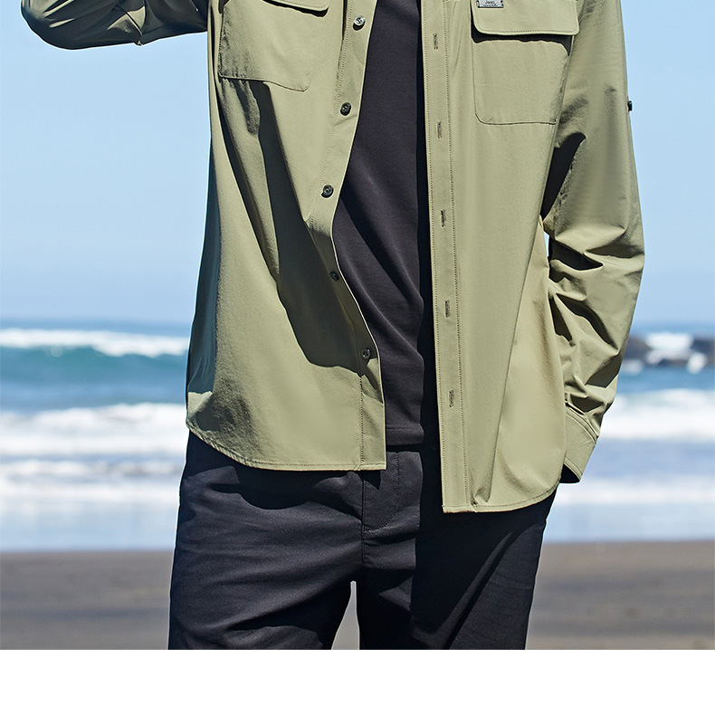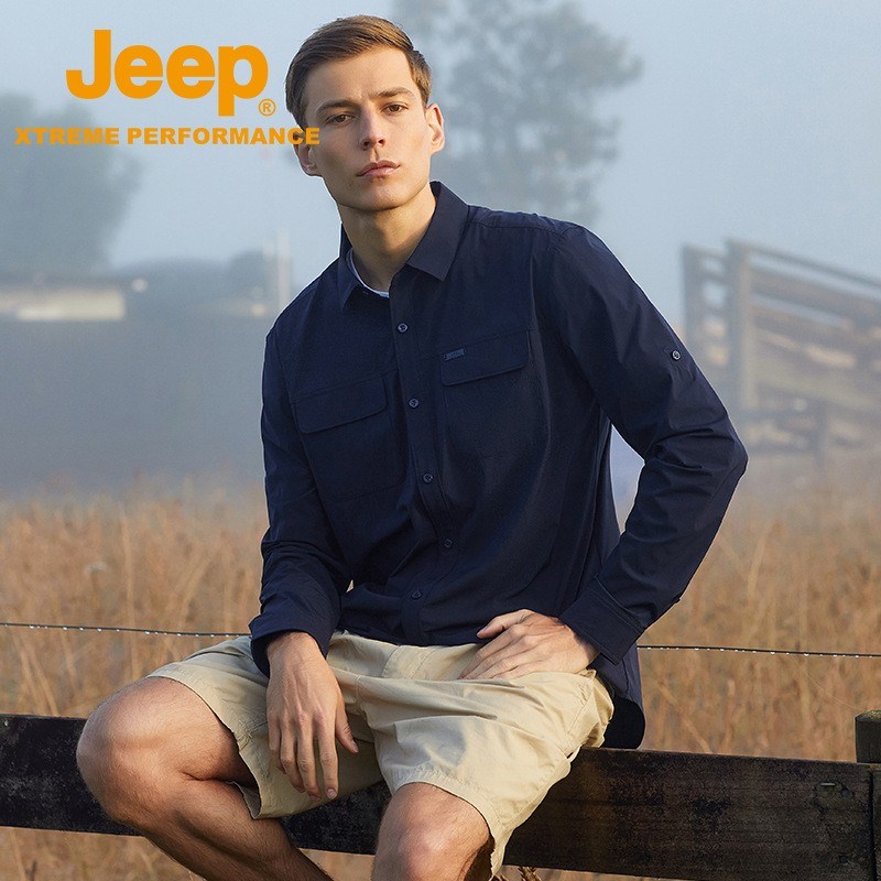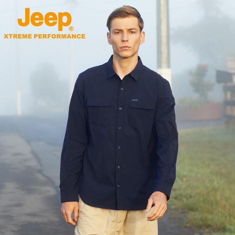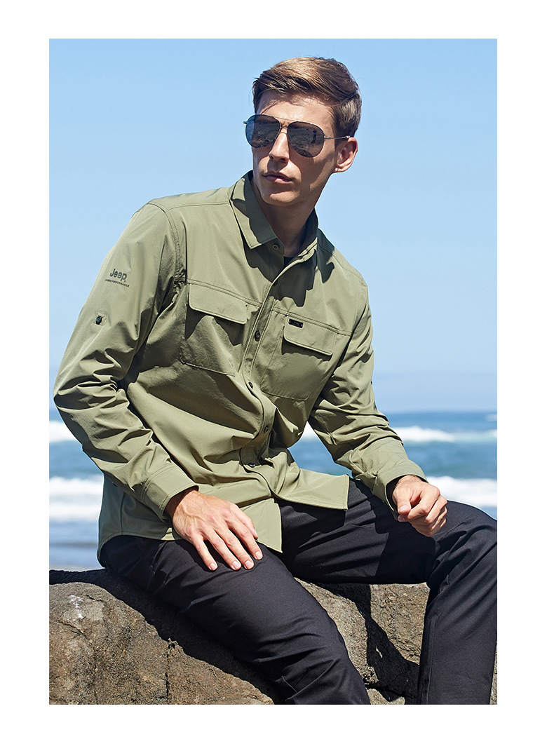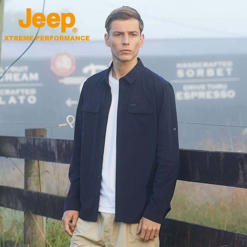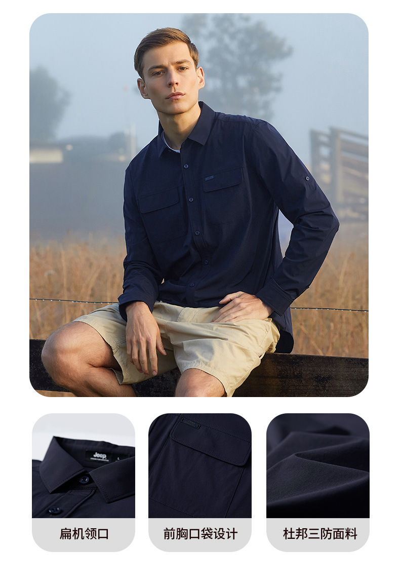 JEEP 男士纯色潮春秋宽松工装衬衫翻领休闲内搭长袖衬衫男外穿J112094661