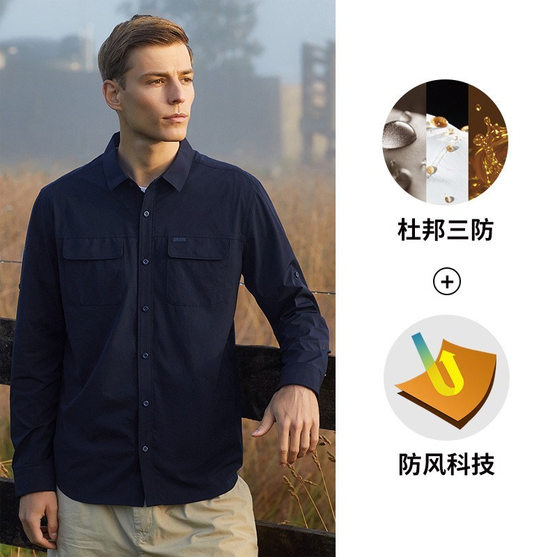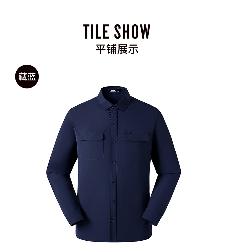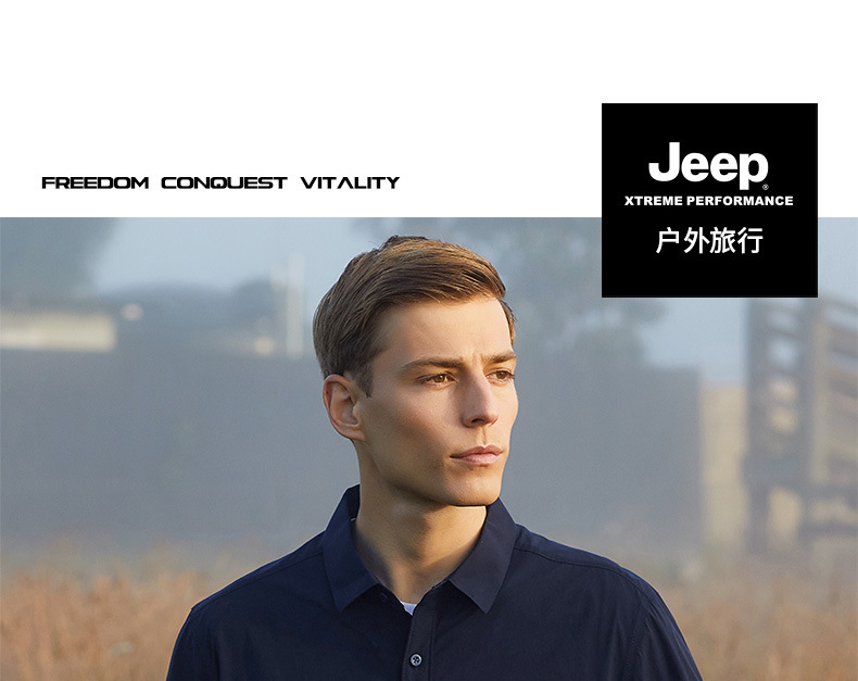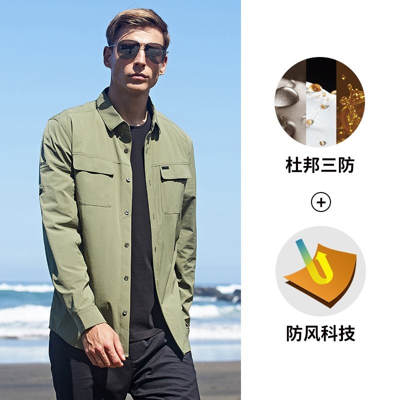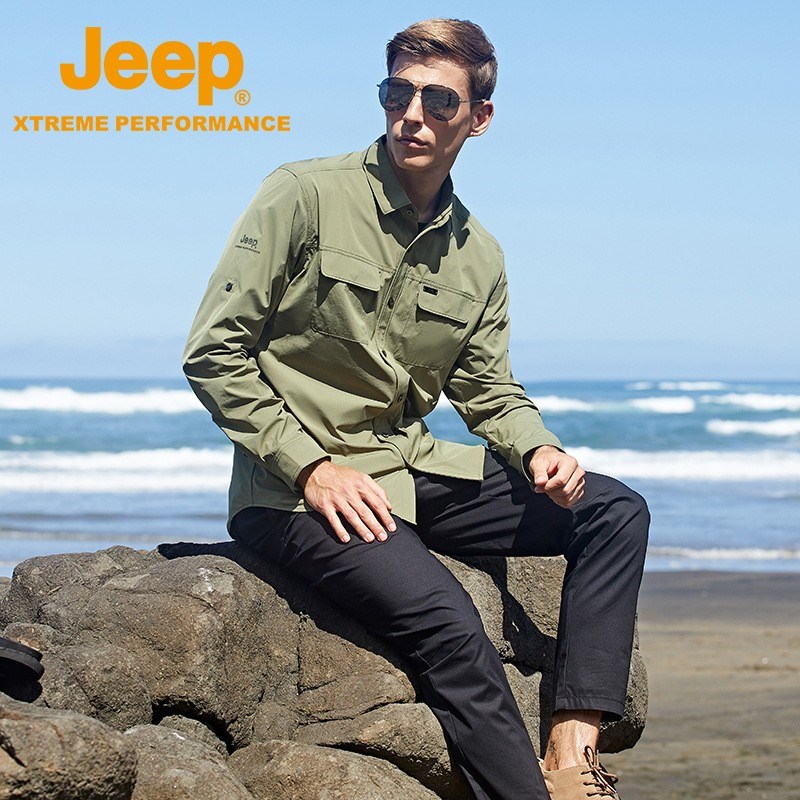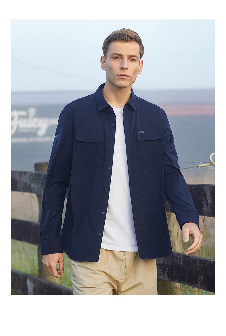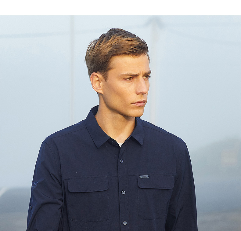 JEEP 男士纯色潮春秋宽松工装衬衫翻领休闲内搭长袖衬衫男外穿J112094661