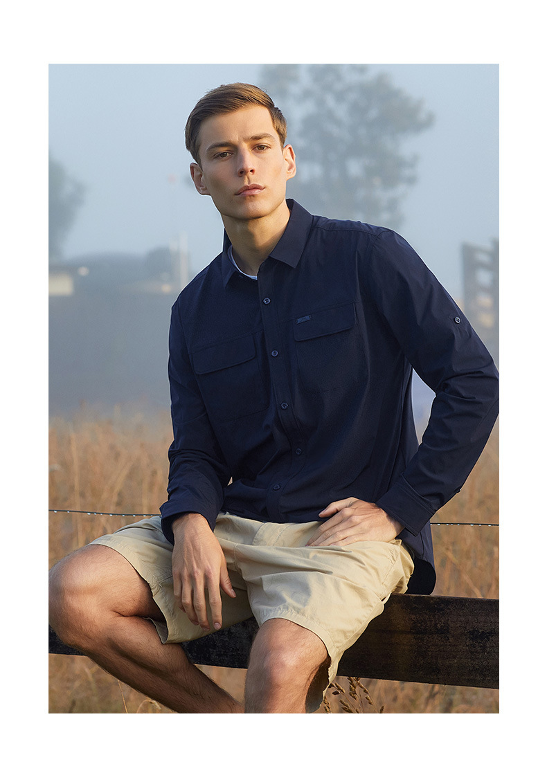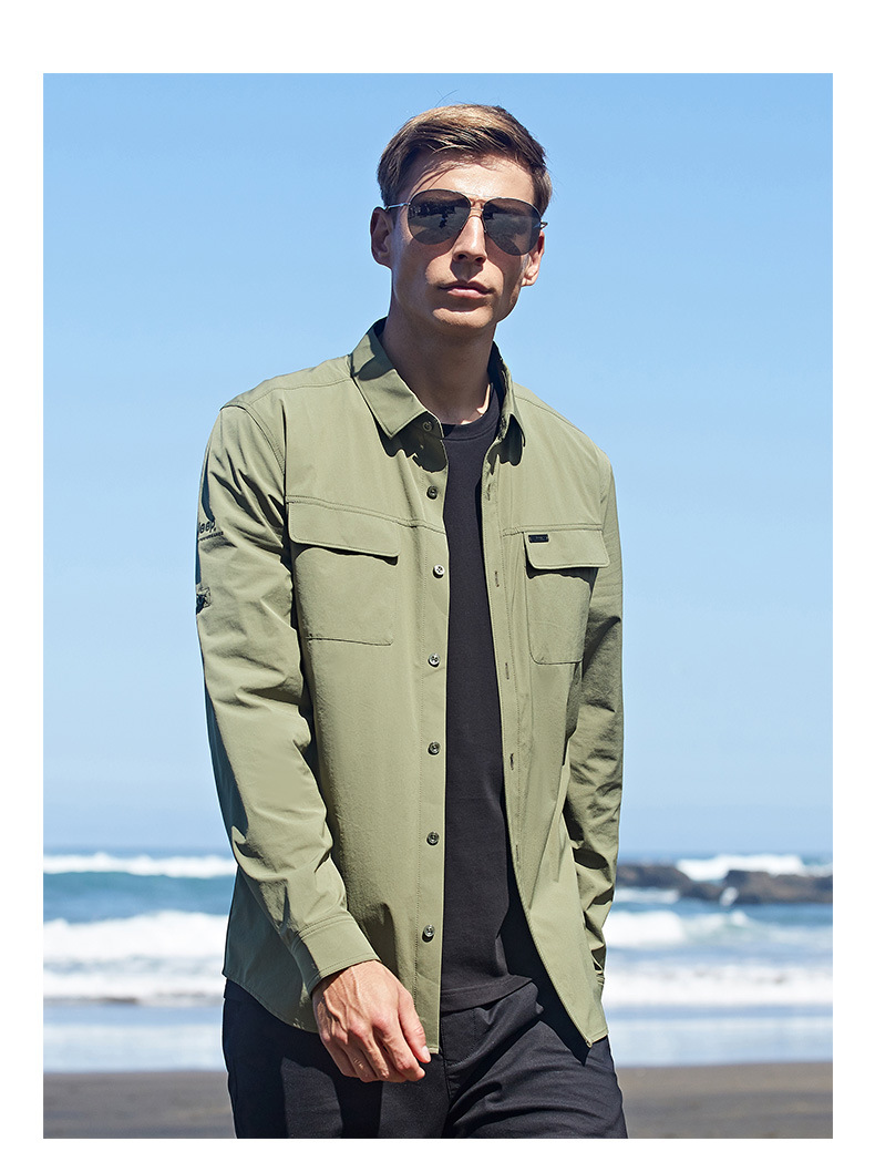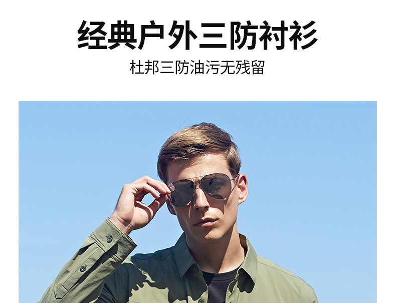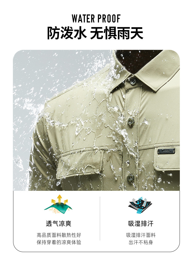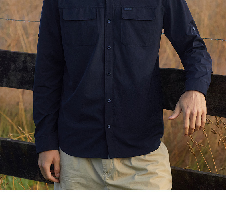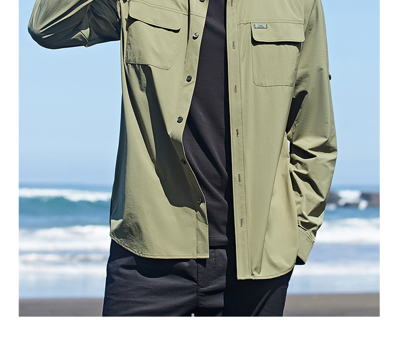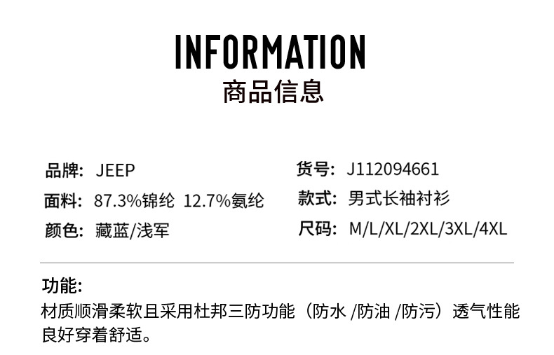 JEEP 男士纯色潮春秋宽松工装衬衫翻领休闲内搭长袖衬衫男外穿J112094661