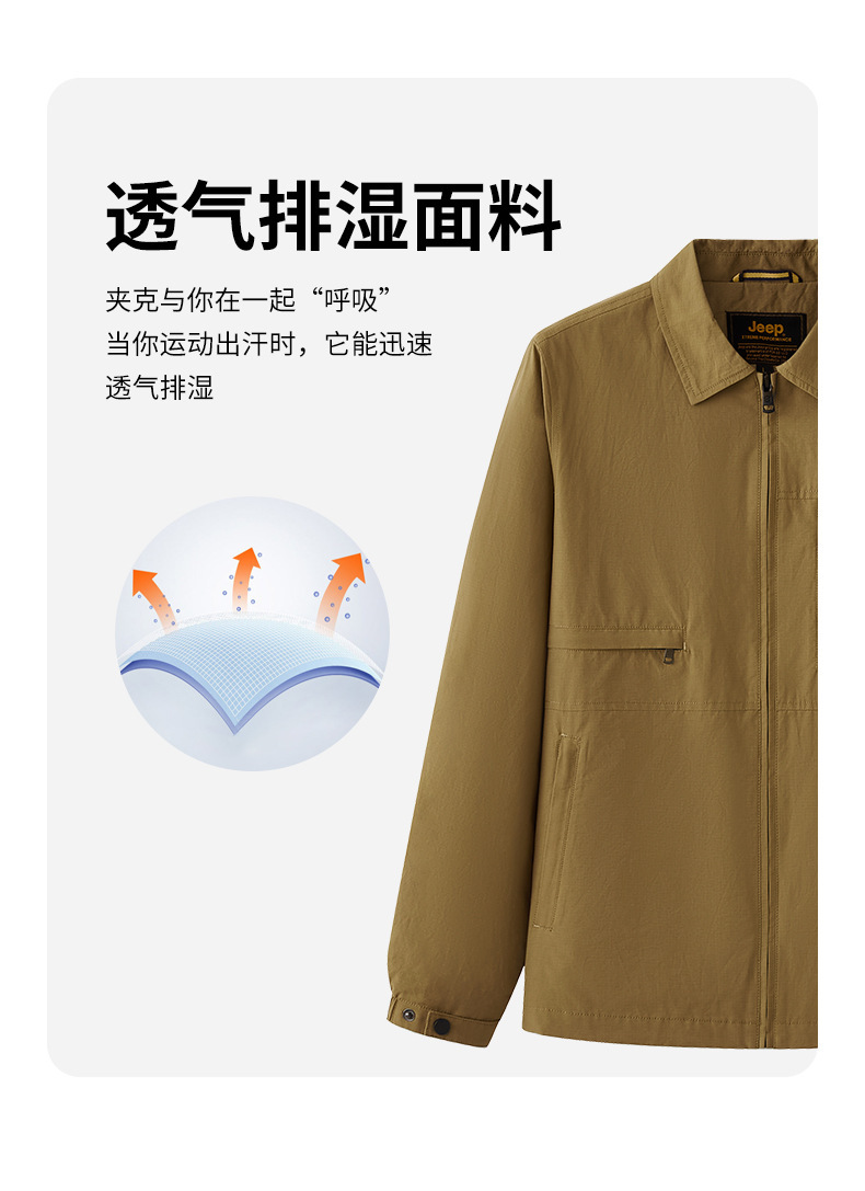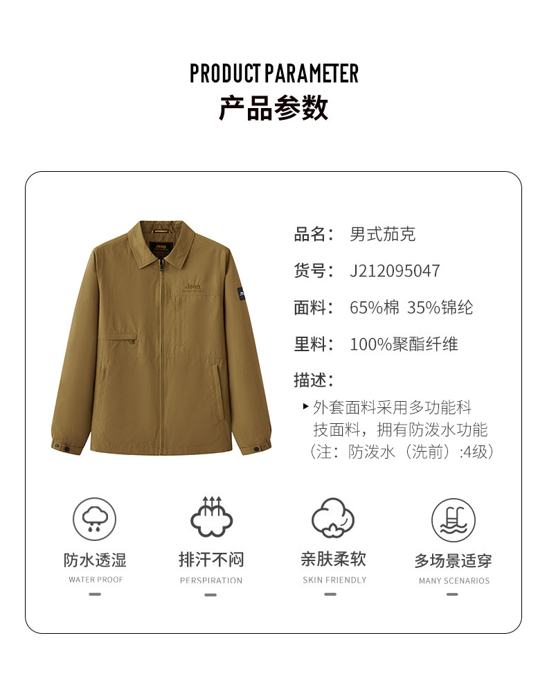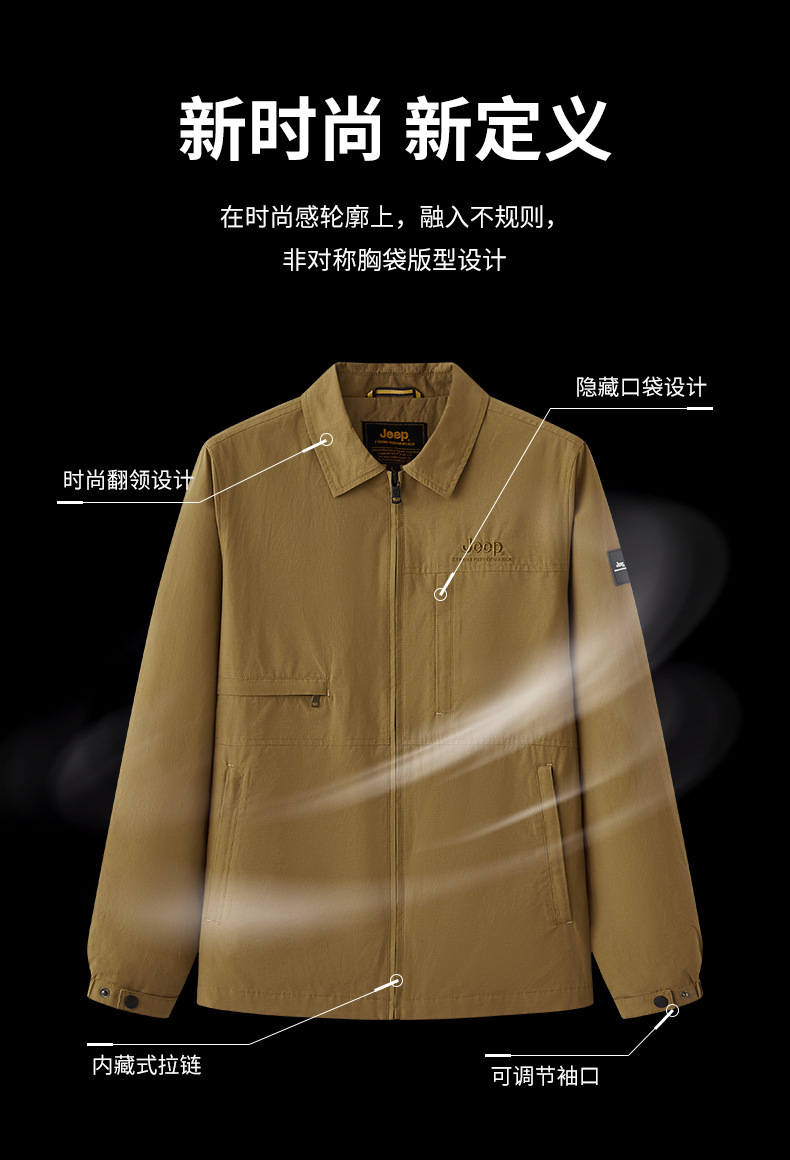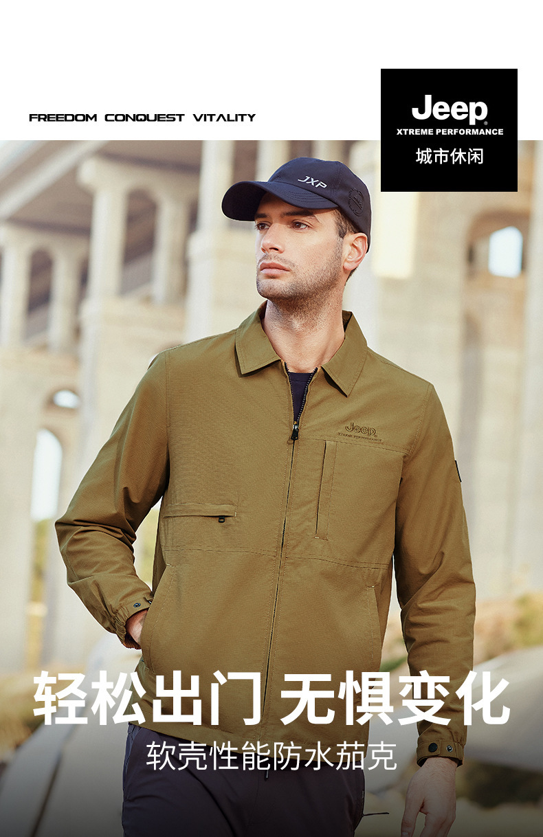 JEEP 春秋季新款软壳男士茄克防泼水科技面料硅胶标章时尚简约J212095047