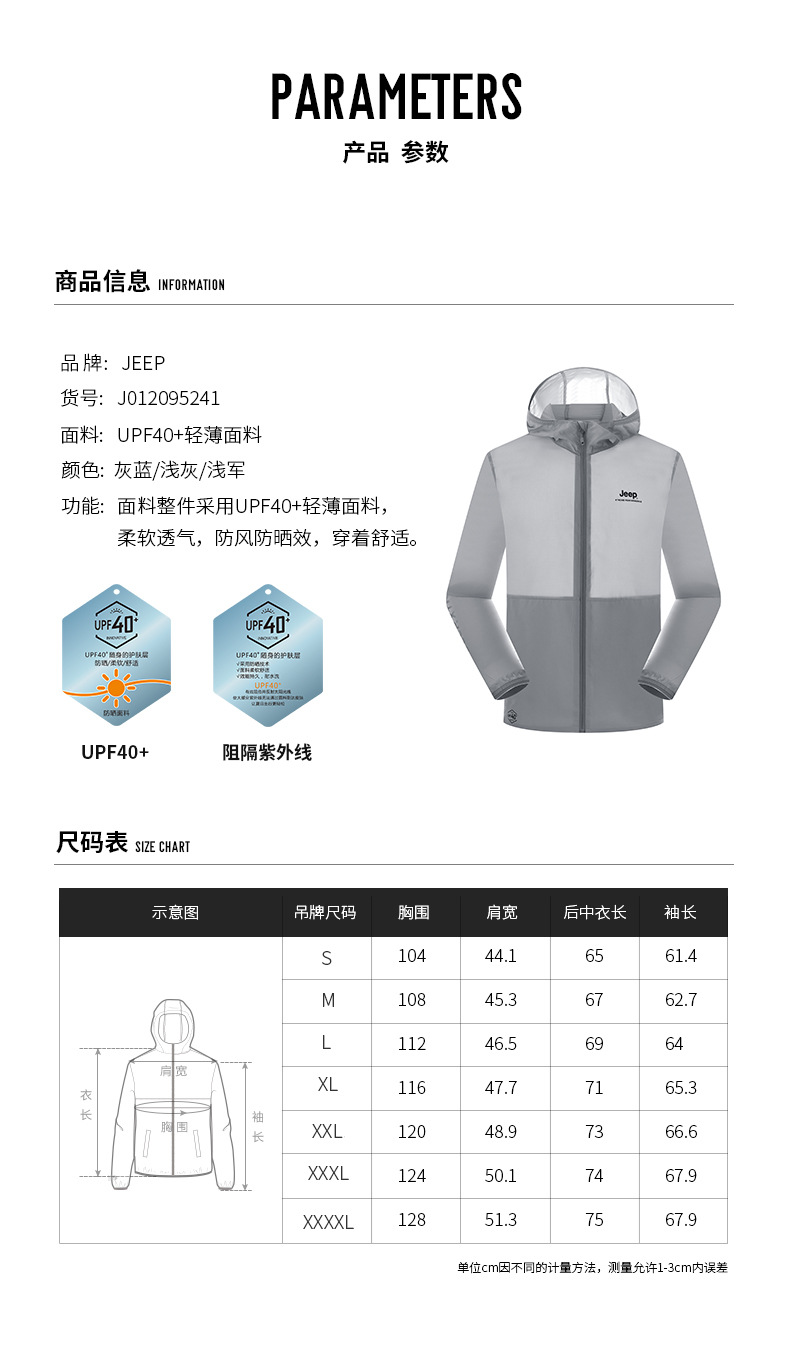 JEEP 新款防晒服男士春季夏季皮肤衣透气速干休闲户外风衣外套潮J012095241
