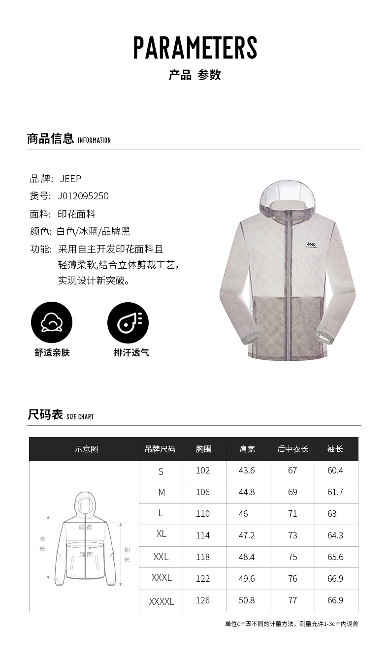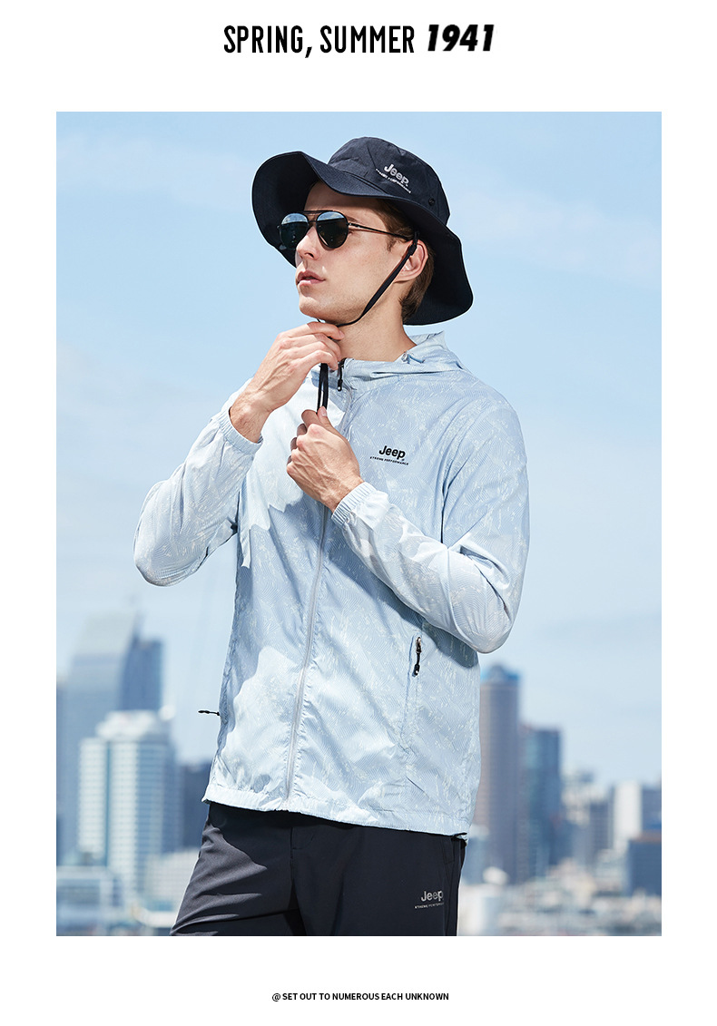 JEEP 户外防晒衣男款春夏新款连帽轻薄休闲皮肤衣防晒防风服外套男J012095250