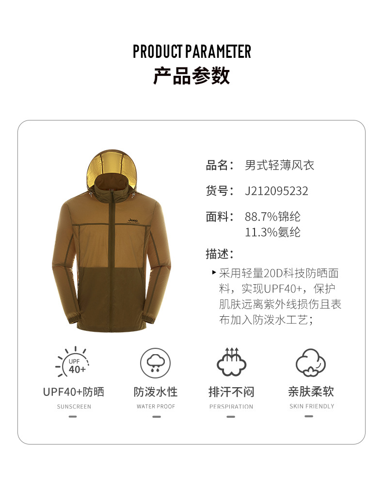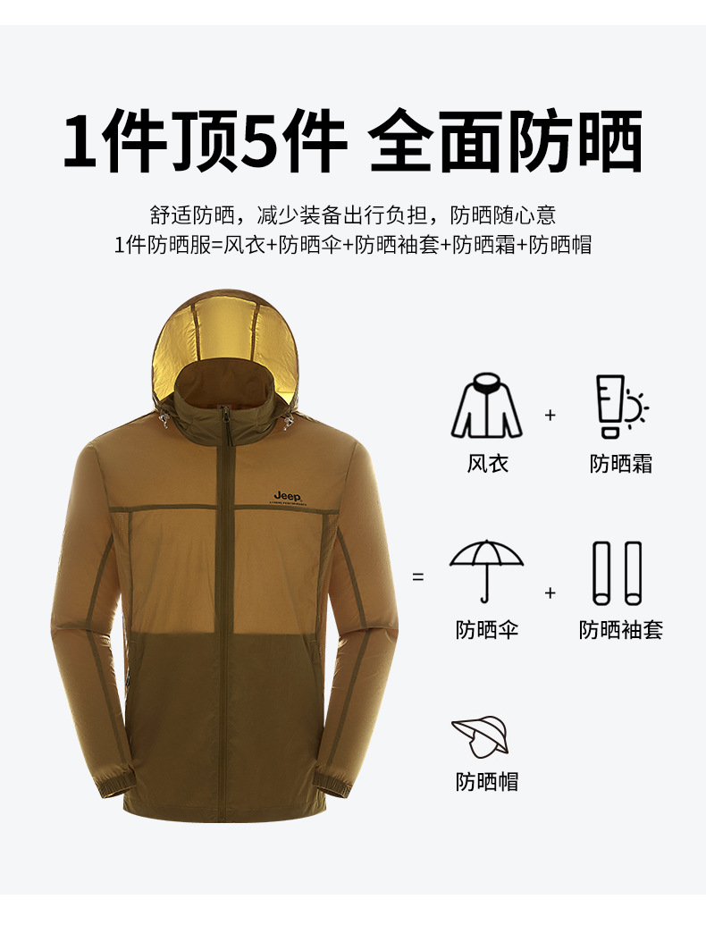 JEEP 防晒衣男防紫外线透气皮肤衣防晒外套运动薄春夏季防晒服新款J212095232