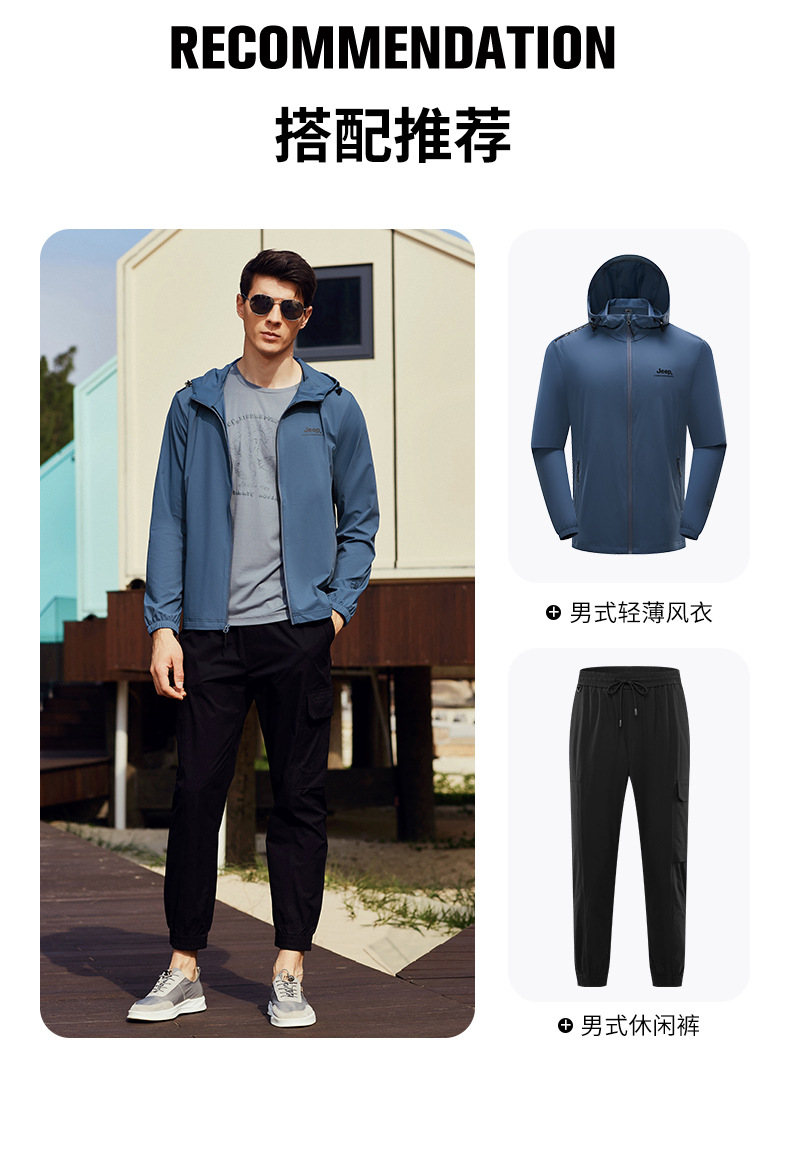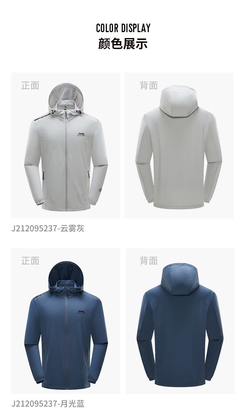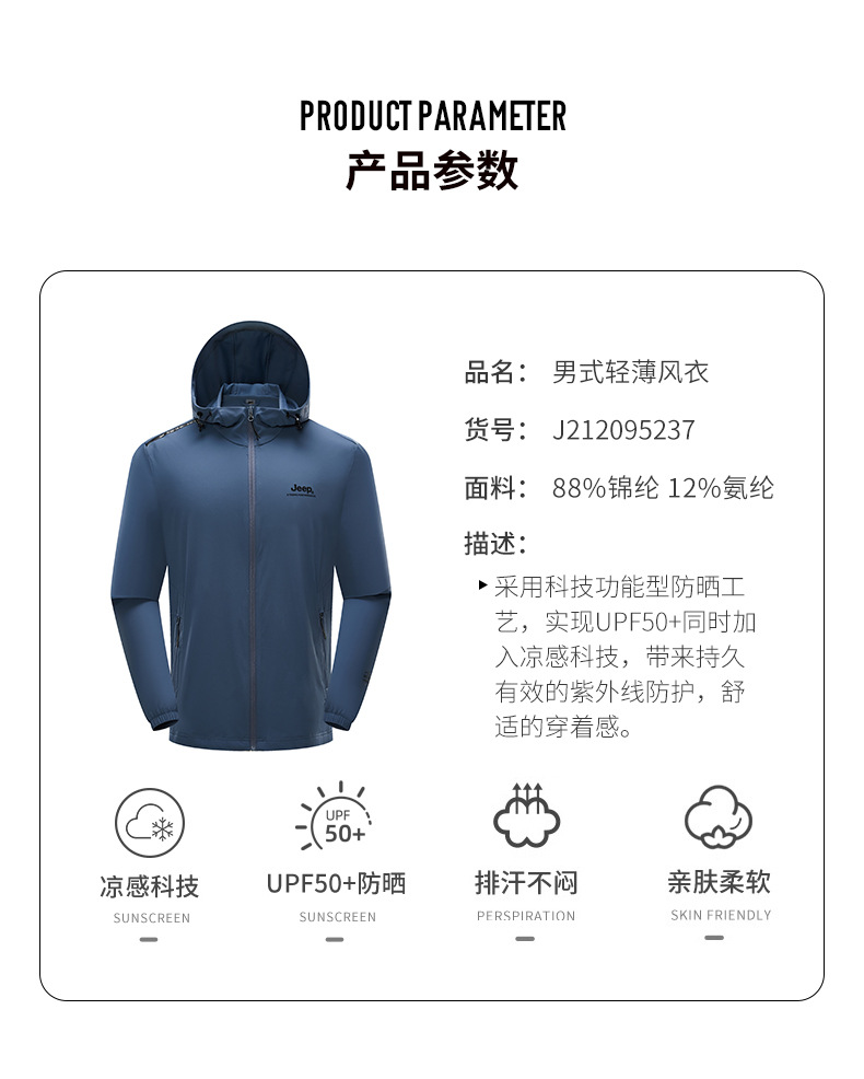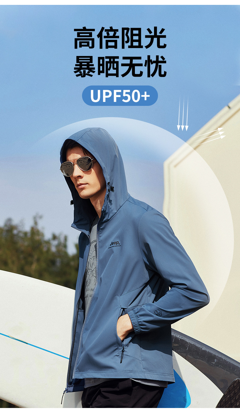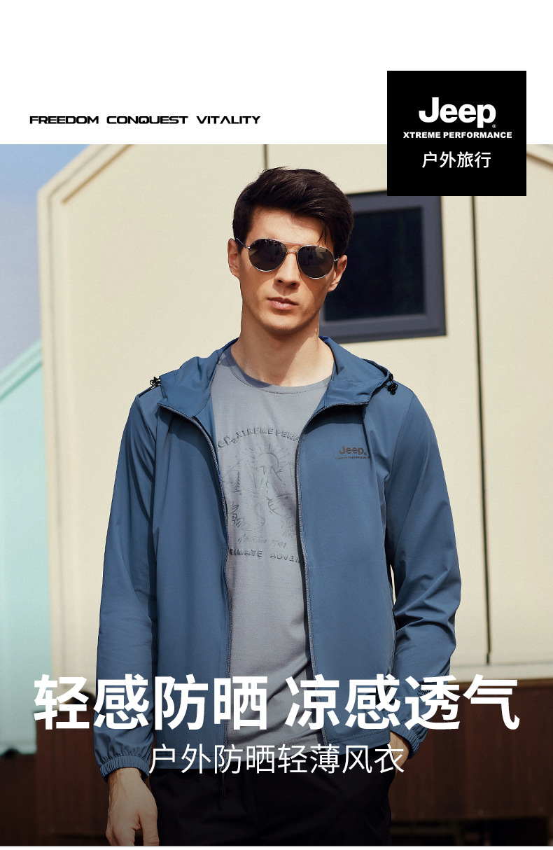 JEEP 防晒衣男士防紫外线透气皮肤衣防风外套户外运动轻薄风衣潮男J212095237