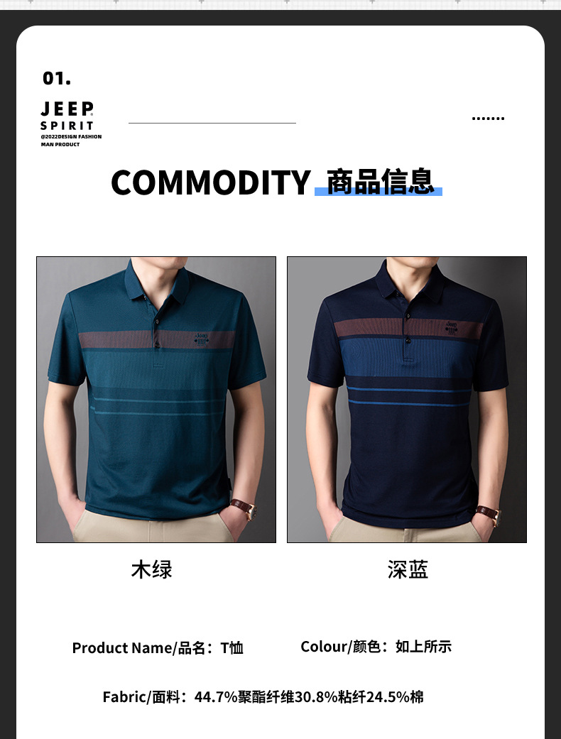 JEEP SPIRIT POLO衫男夏季宽松男士新款春夏季节纯色翻领T恤男装商务短袖38266