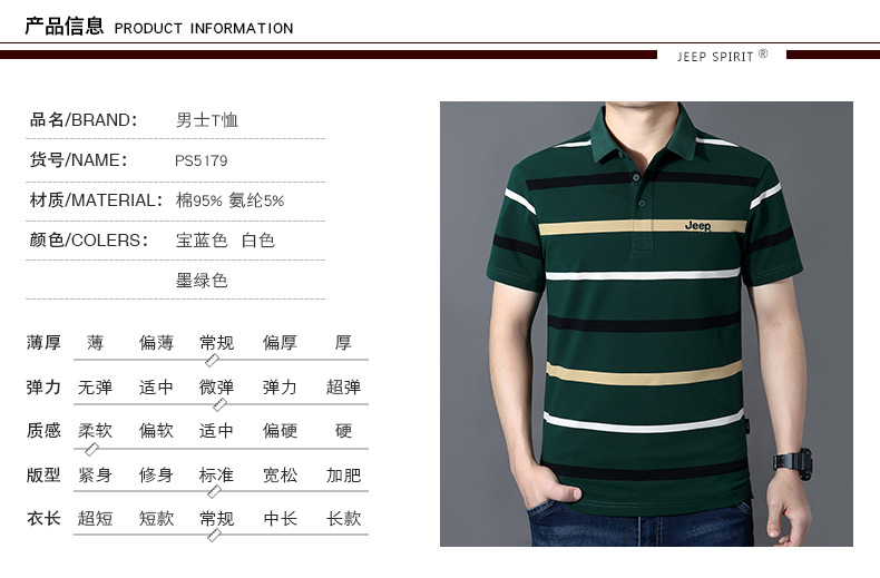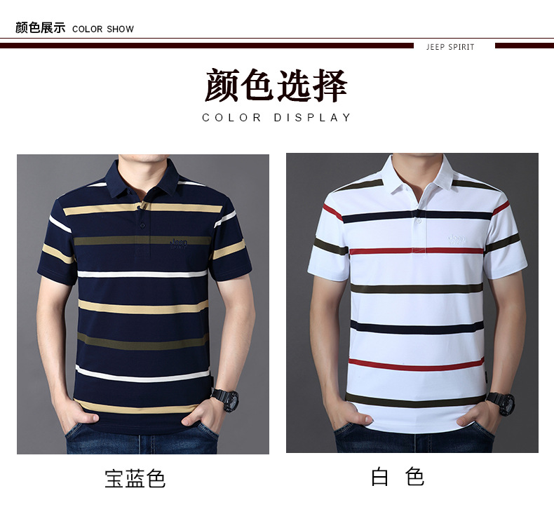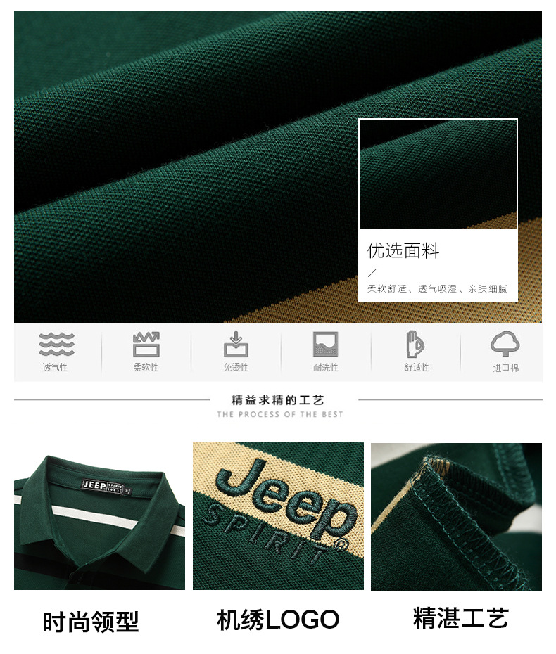 JEEP SPIRIT新款男士短袖T恤春夏季商务时尚修身翻领撞色舒适轻熟POLO衫PS5179