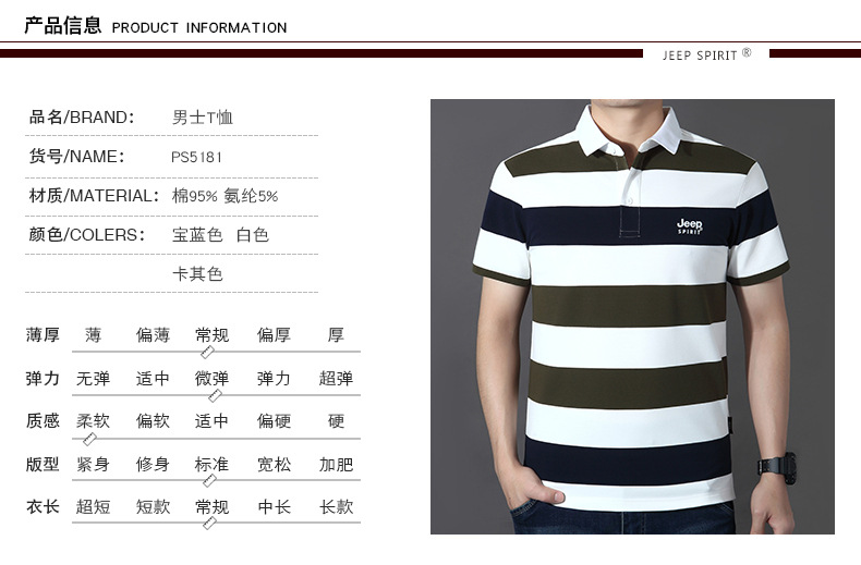 JEEP SPIRIT短袖T恤男士夏季商务成熟稳重时尚修身翻领撞色透气舒适POLO衫潮 PS5181