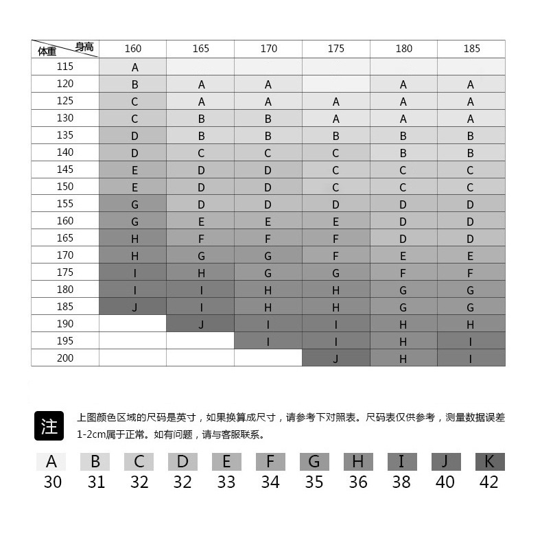 规格 :30 31 32 33 34 35 36 38 40 42 44
