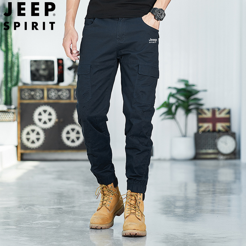 JEEP SPIRIT春夏舒适束脚裤子男士薄款潮流百搭冰凉感夏季冰丝裤休闲长裤JW131187