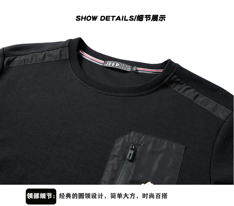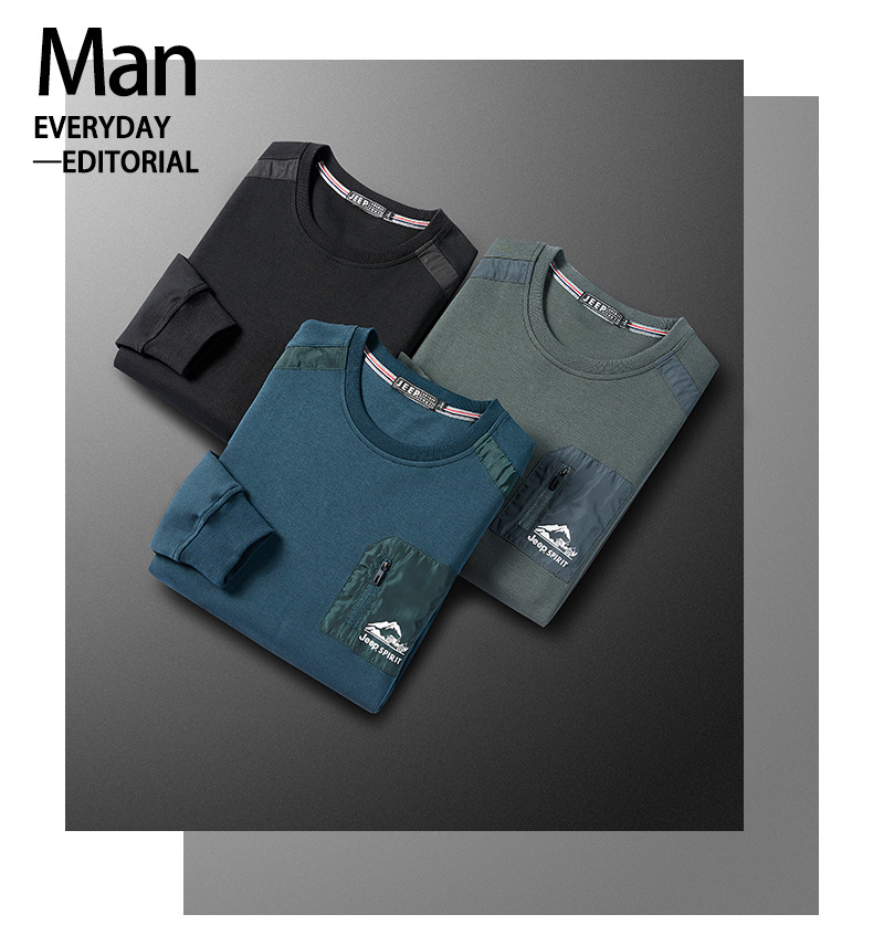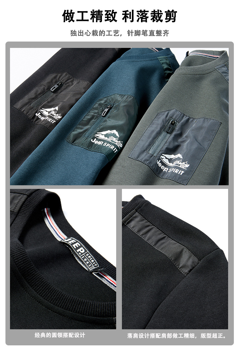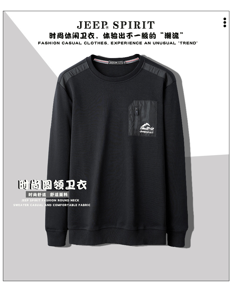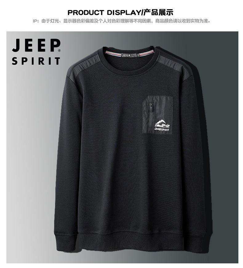 JEEP SPIRIT春季新款时尚潮流圆领卫衣宽松百搭男士春秋长袖T恤舒适透气HB8225