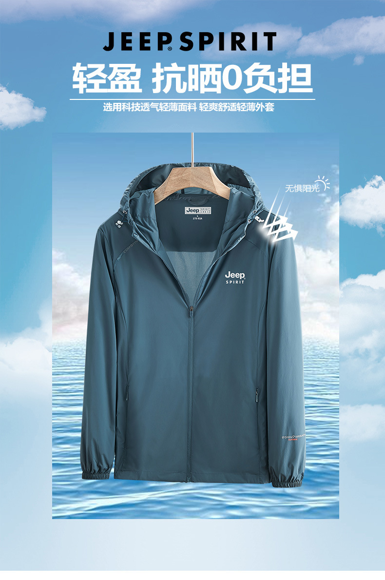 JEEP SPIRIT春夏新款户外防晒衣冰凉男士透气皮肤风衣外套防紫外线防晒服DT301181