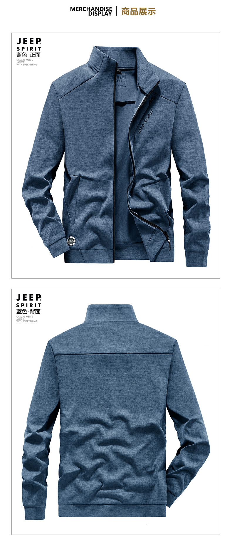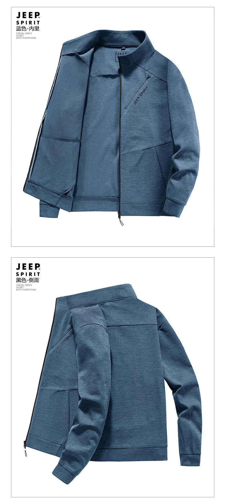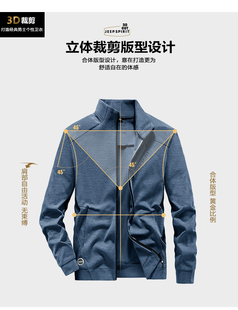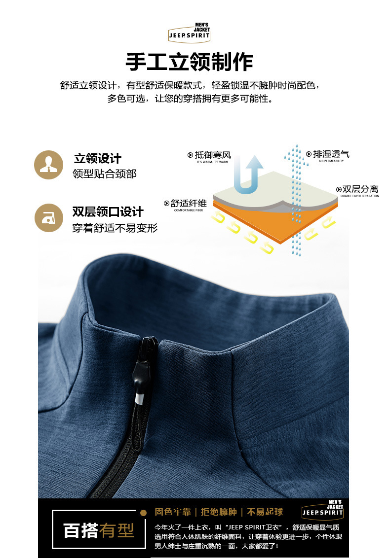JEEP SPIRIT时尚卫衣男士新款开衫长袖立领拉链茄克春秋季男装上衣休闲运动YSF271159