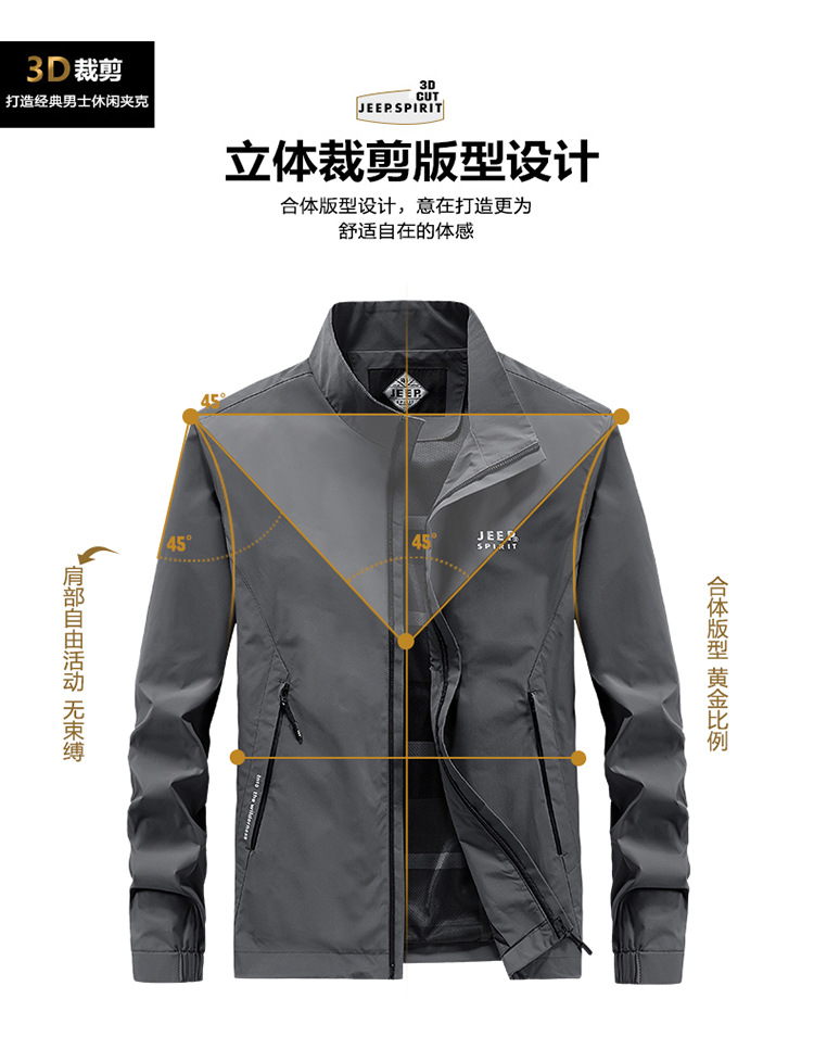 JEEP SPIRIT春秋新款户欧美男士夹克上衣外套休闲立领外穿上衣男JLB721157