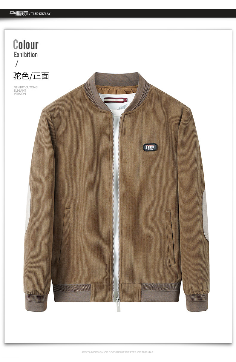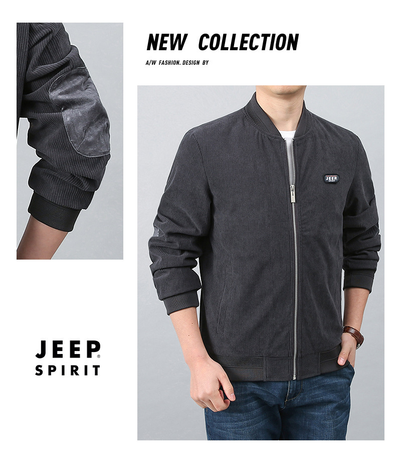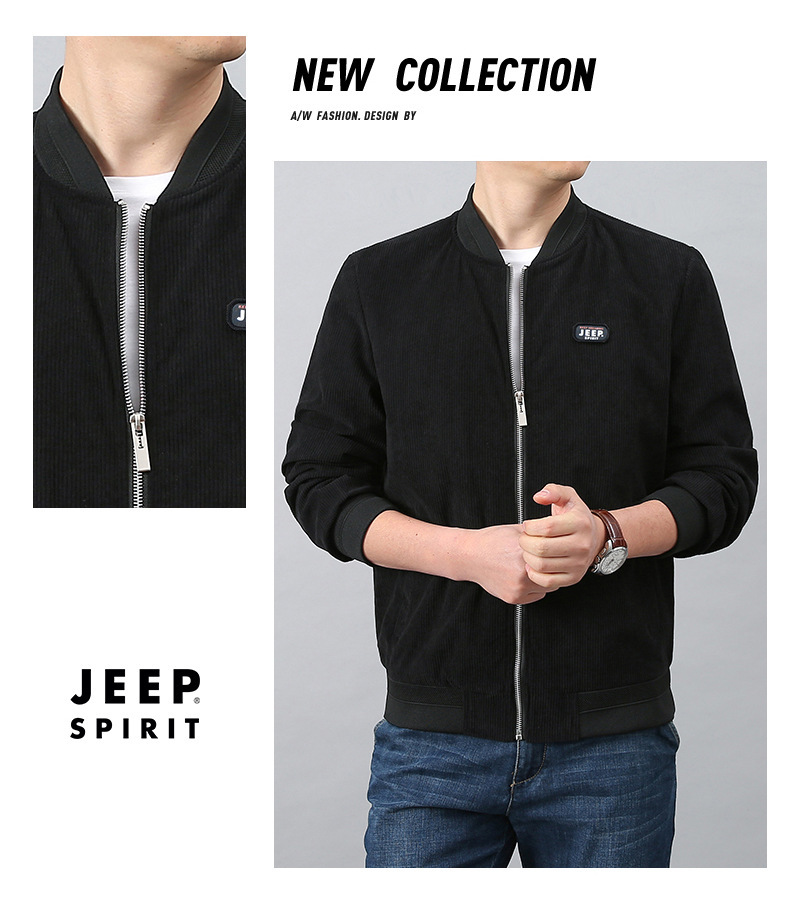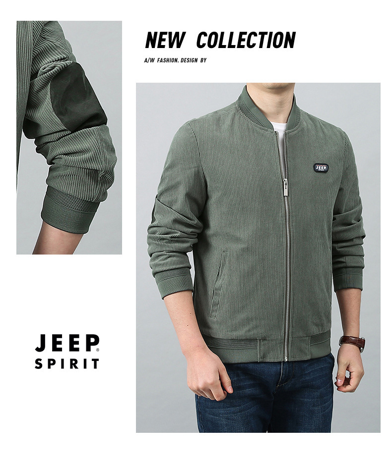 JEEP SPIRIT春秋季新男灯芯绒夹克休闲潮流时尚简约日常纯色JP0098