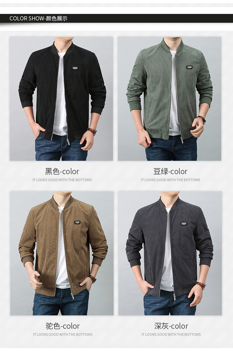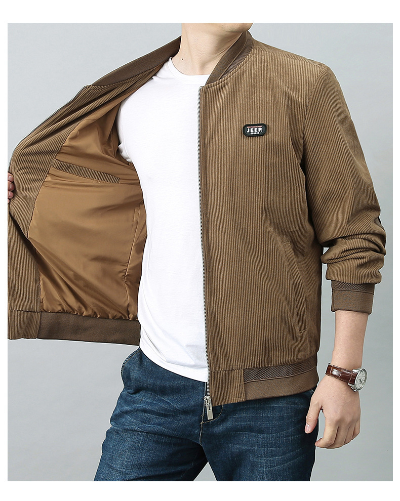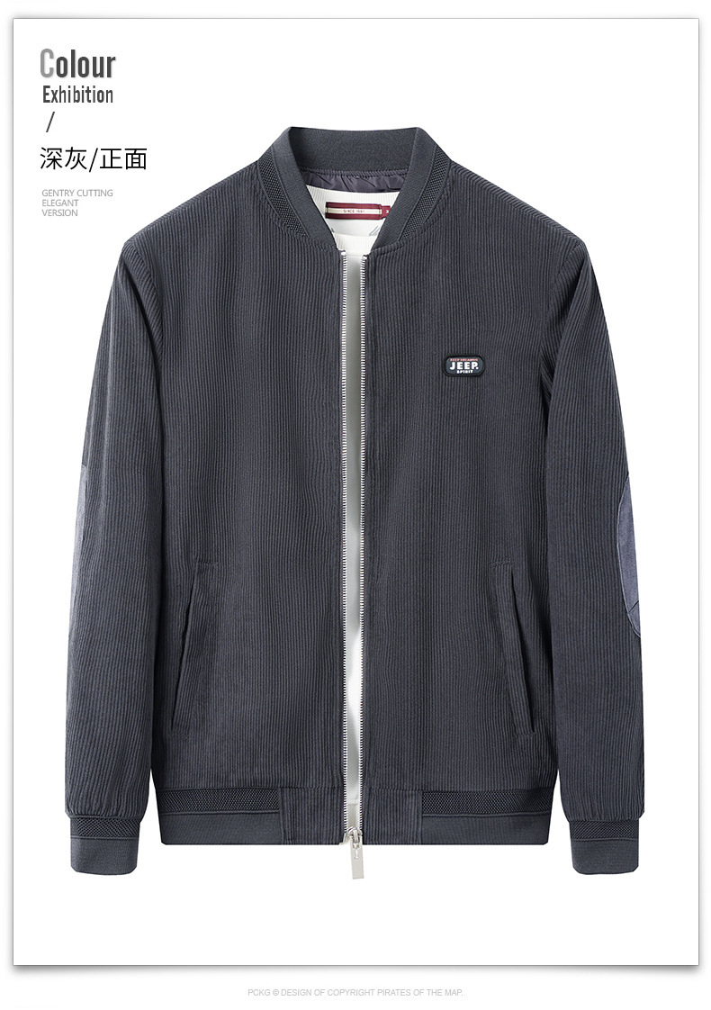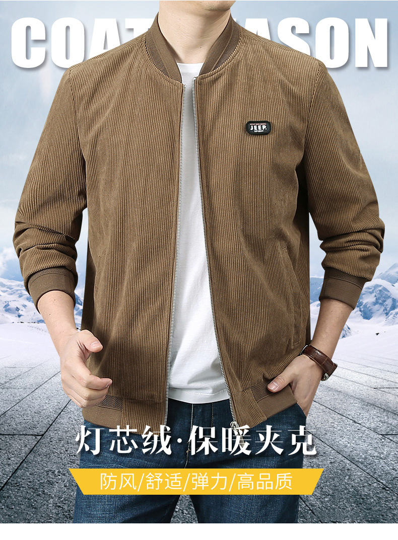 JEEP SPIRIT春秋季新男灯芯绒夹克休闲潮流时尚简约日常纯色JP0098