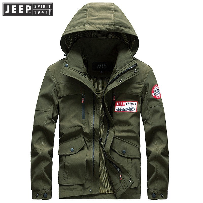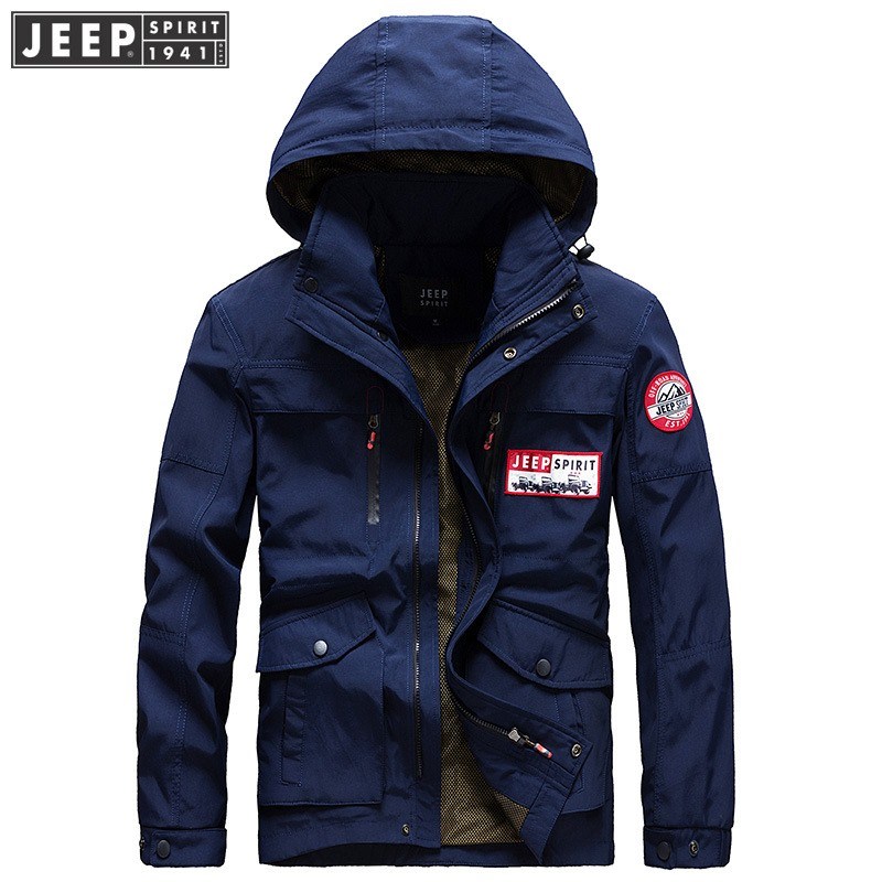 JEEP SPIRIT春秋季男装上新时尚纯色百搭连帽夹克外套LWS051