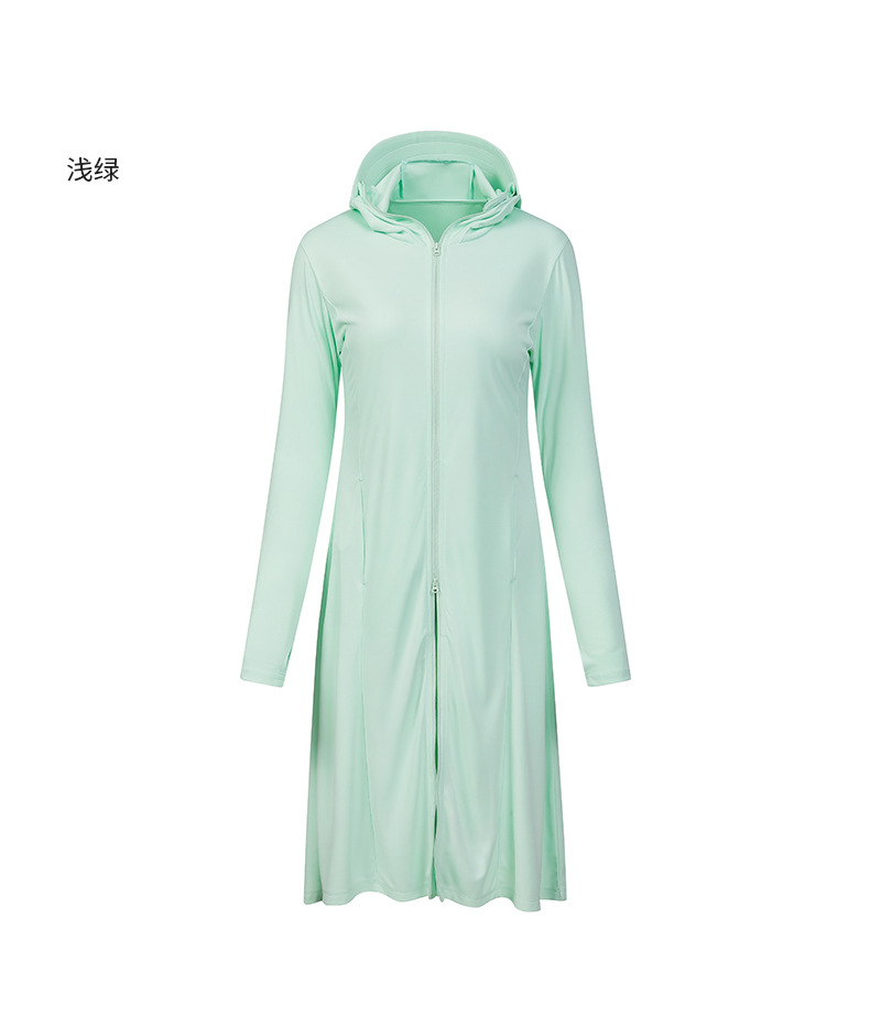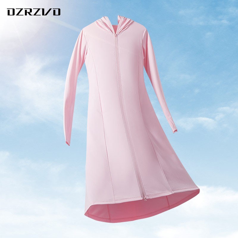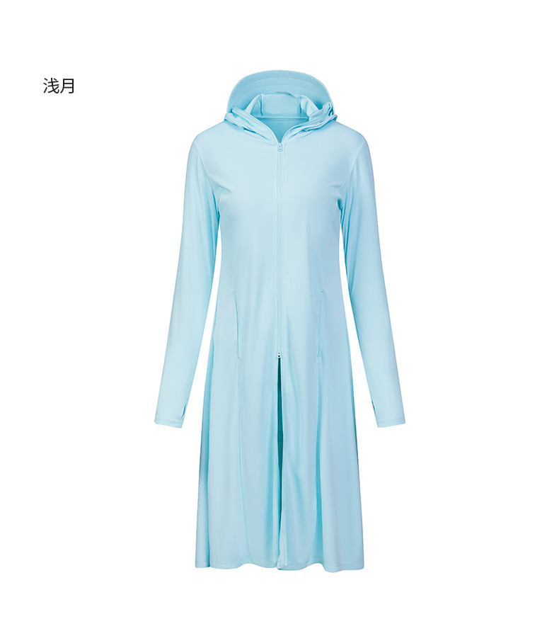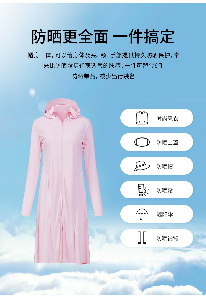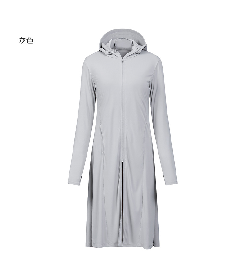DZRZVD/杜戛地夏季女士长款皮肤风衣防晒透气户外服面罩大帽檐双向拉链潮 111343