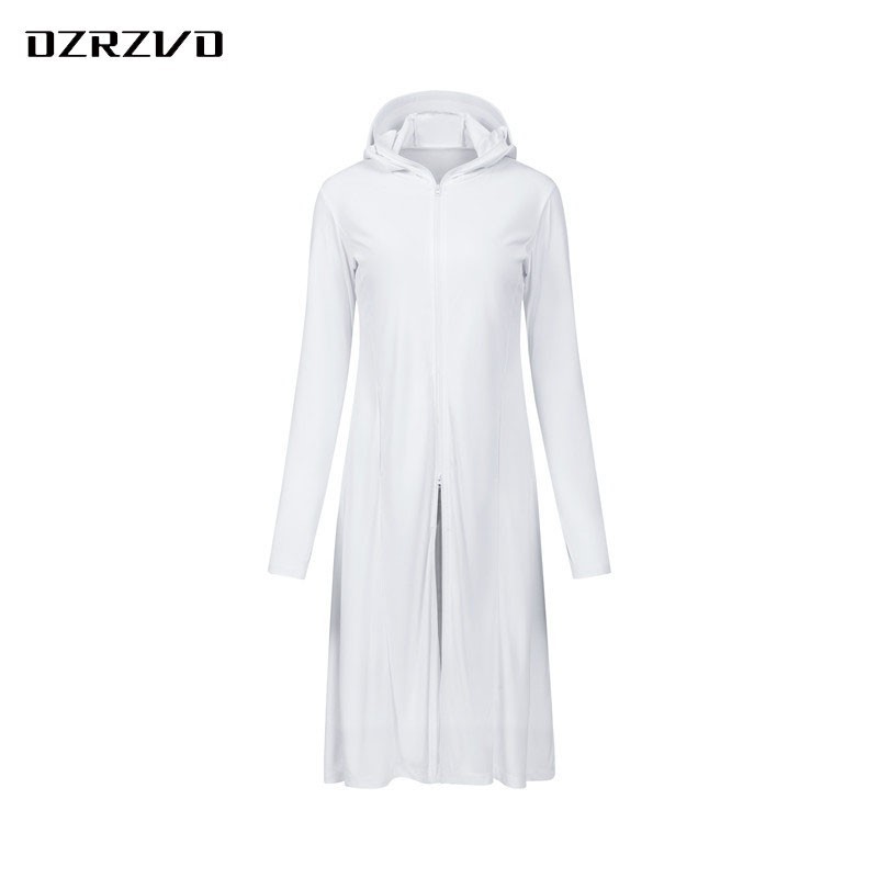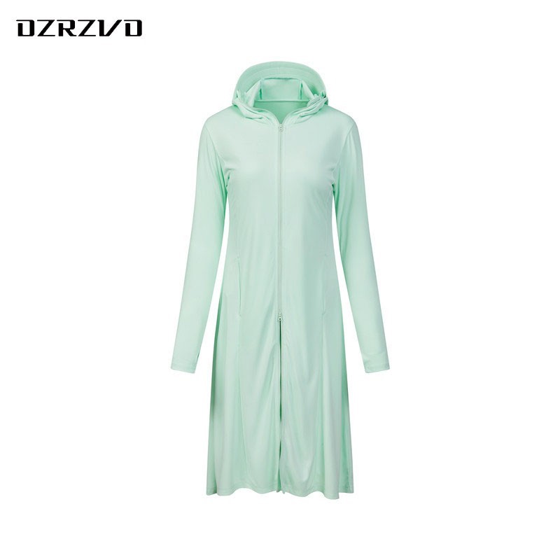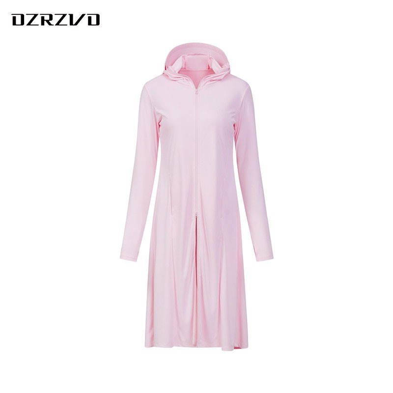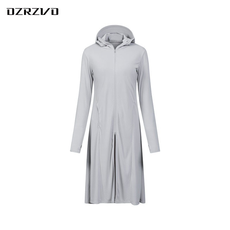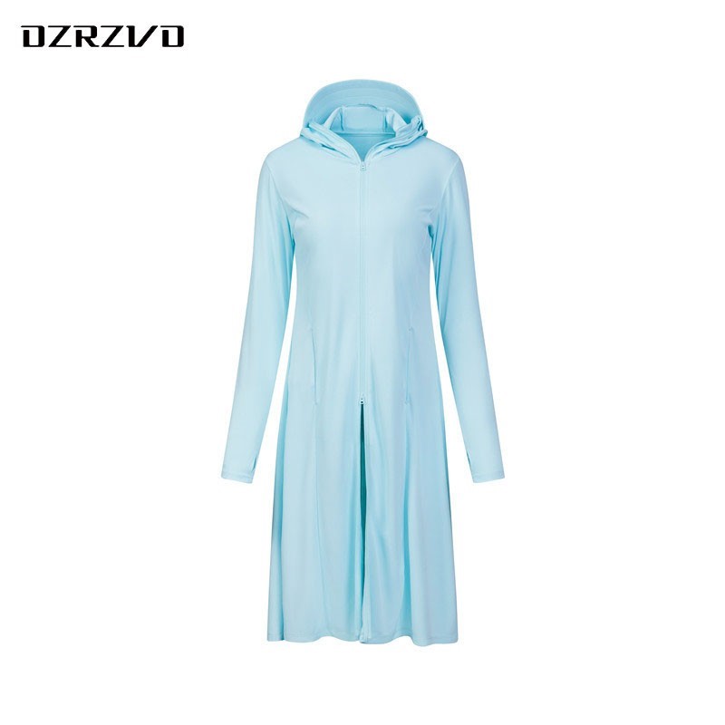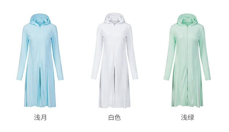 DZRZVD/杜戛地夏季女士长款皮肤风衣防晒透气户外服面罩大帽檐双向拉链潮 111343