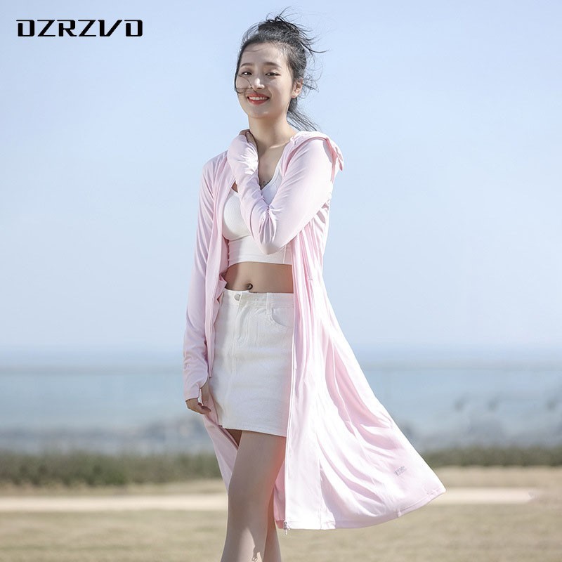 DZRZVD/杜戛地夏季女士长款皮肤风衣防晒透气户外服面罩大帽檐双向拉链潮 111343