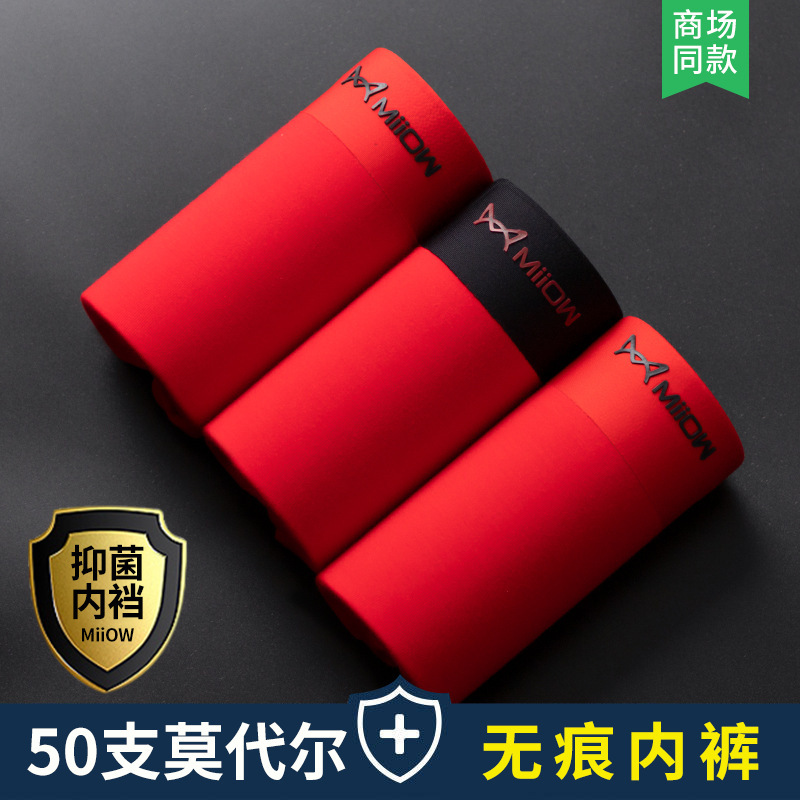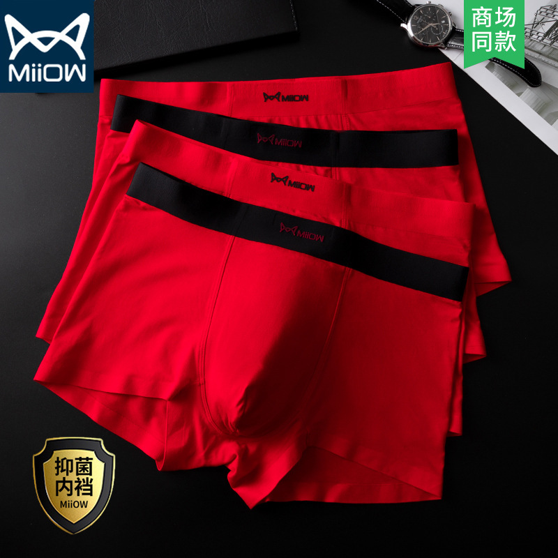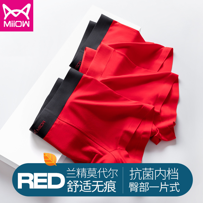 MiiOW/猫人男士内裤莫代尔无痕平角裤本命年大红色喜庆红底裤潮M1085