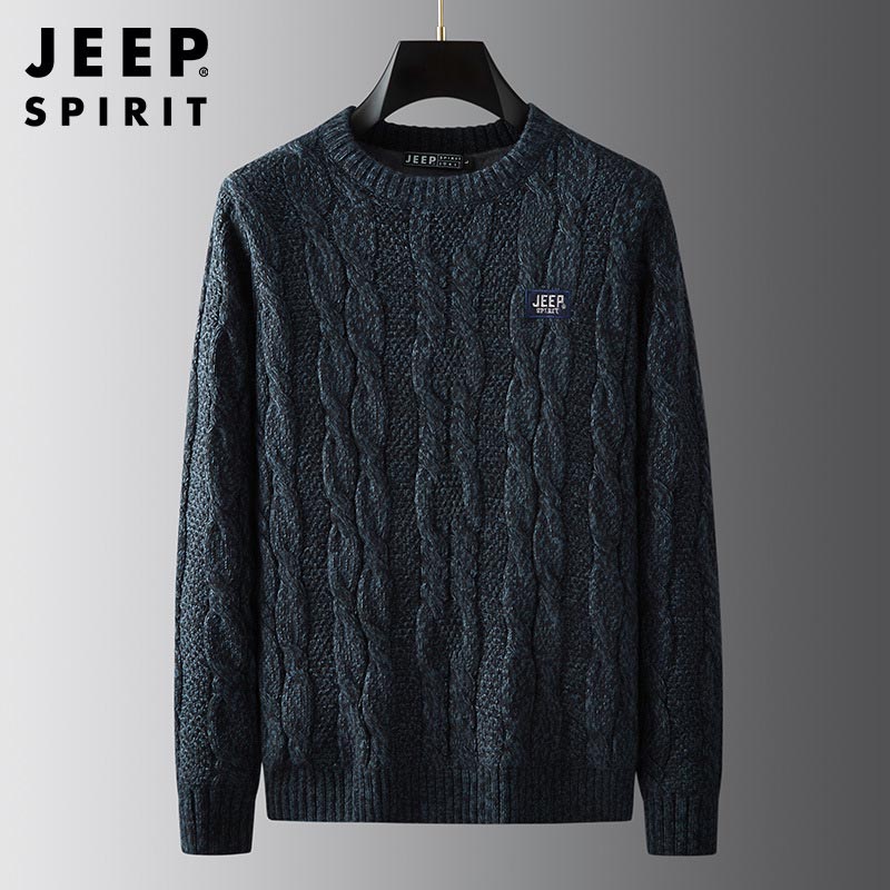 服饰配饰>男装>毛衣> JEEP SPIRIT秋冬新品男士毛衣加绒加厚款圆领针织衫宽松休闲打底衫冬季潮JD0551534