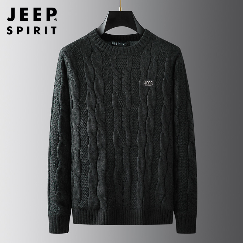 JEEP SPIRIT秋冬新品男士毛衣加绒加厚款圆领针织衫宽松休闲打底衫冬季潮JD0551534