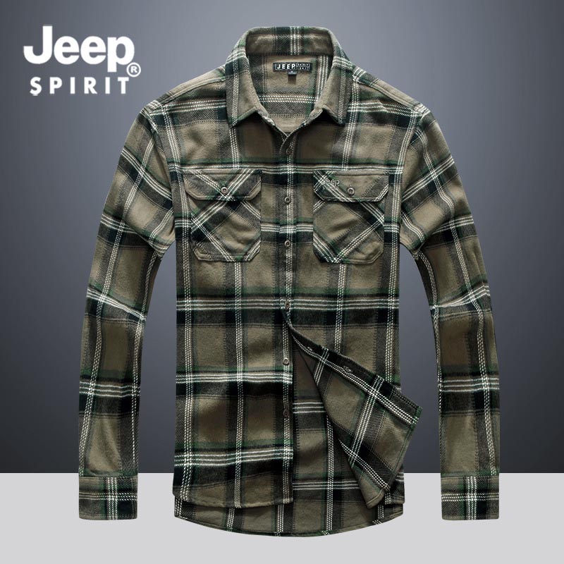 JEEP SPIRIT秋冬新品衬衫秋季新款休闲外套潮流宽松帅气长袖格子衬衣男士HB-T9706