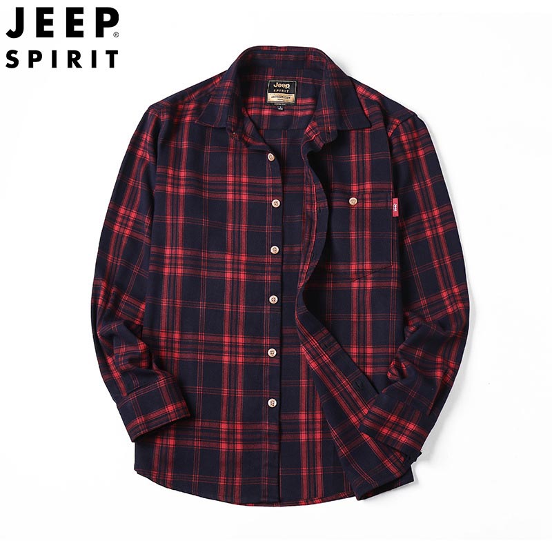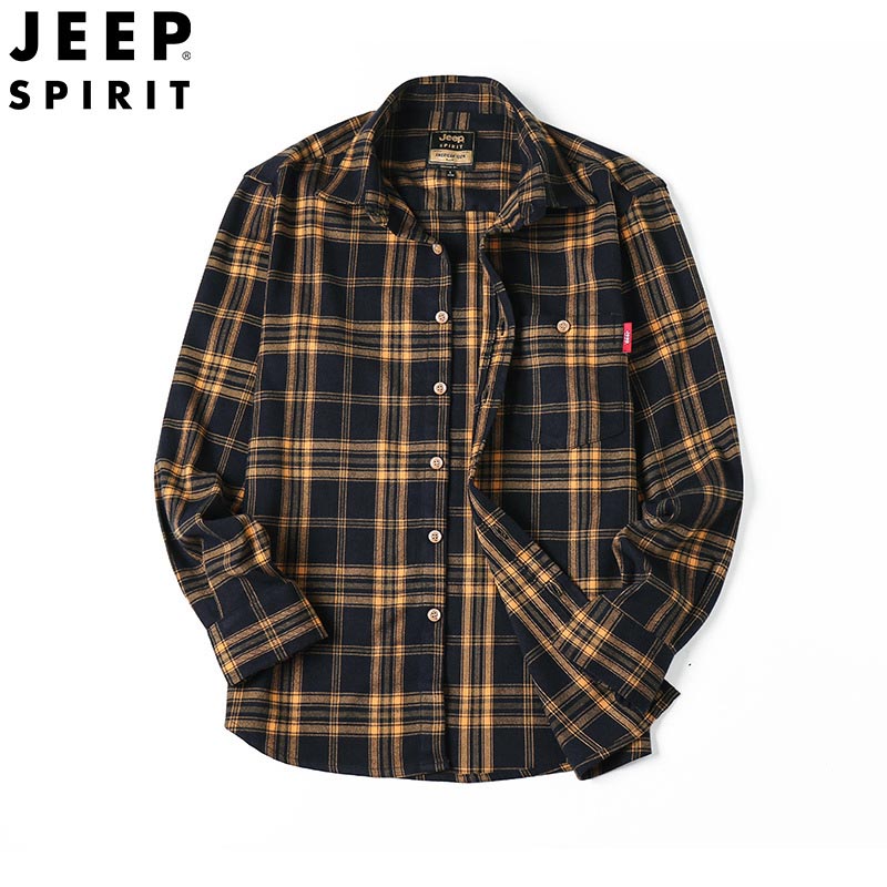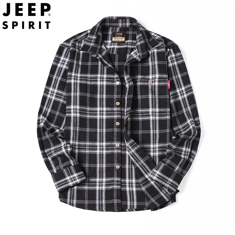 JEEP SPIRIT时尚男士衬衫长袖格子衬衣宽松大码男装休闲衬衫潮流秋冬新品H-5016