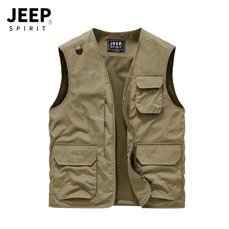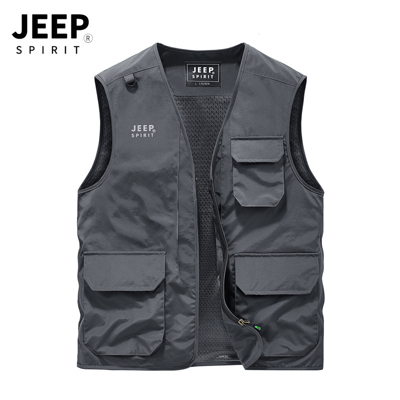 JEEP SPIRIT男士四季薄款多口袋户外钓鱼工装男士钓鱼马甲LJ-JP2201