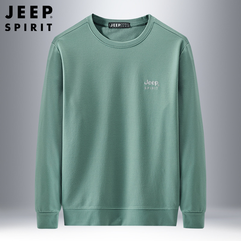 JEEP SPIRIT百搭时尚圆领卫衣男秋冬季新款长袖纯色打底衫大码t恤宽松潮DW-9203