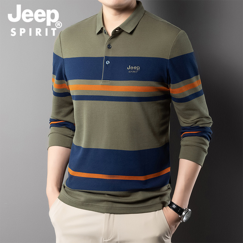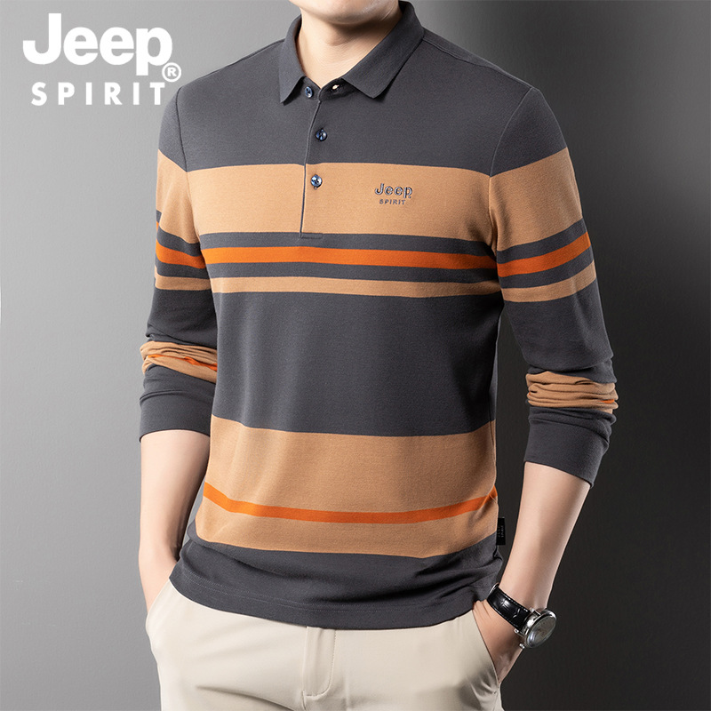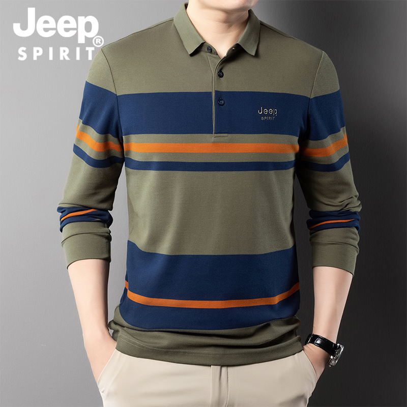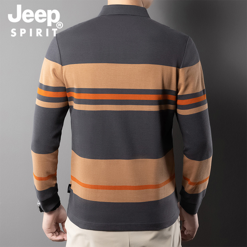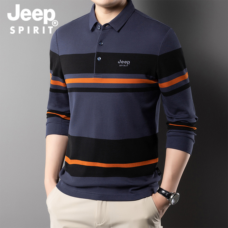 JEEP SPIRIT秋冬新品男装翻领长袖T恤男条纹POLO衫宽松时尚中年爸爸t恤大HB-T8300