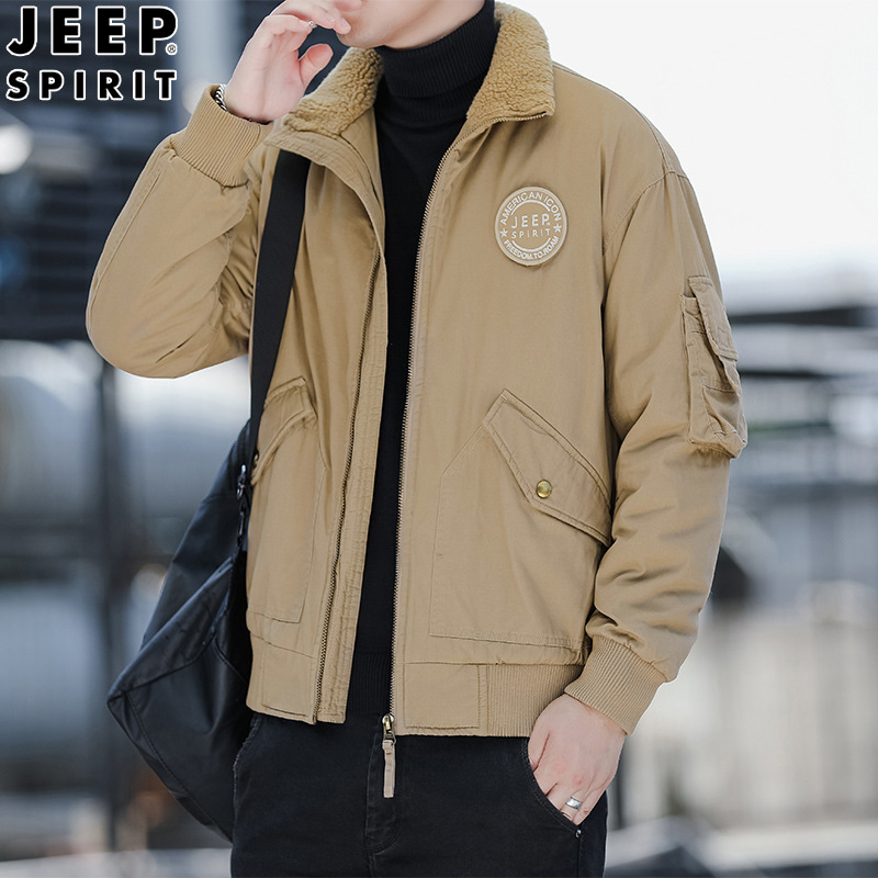JEEP SPIRIT翻领长袖T恤棉质男士条纹POLO衫合身中年成熟t恤大码秋冬新品HB-T8619