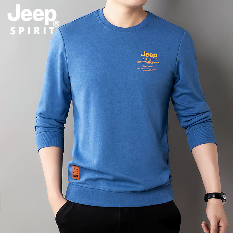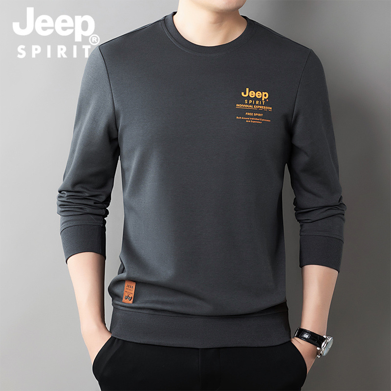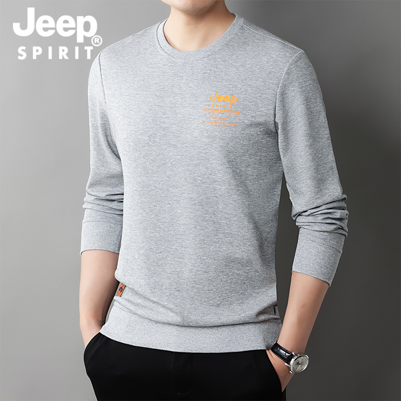 JEEP SPIRIT长袖t恤男中年卫衣宽松体恤男士圆领打底衫秋装上衣秋冬新品HB-T8513