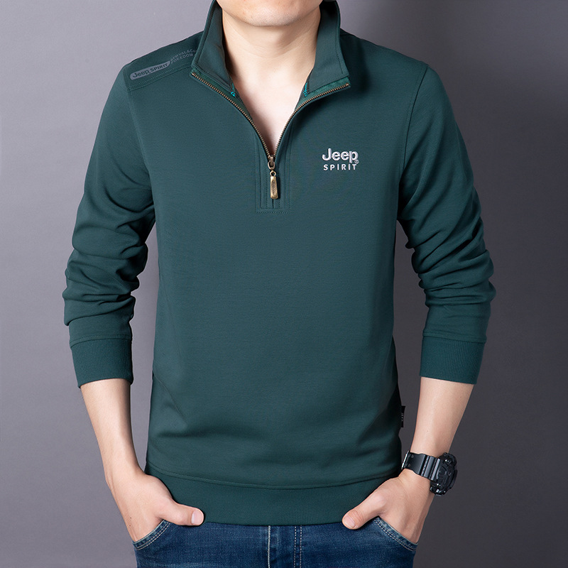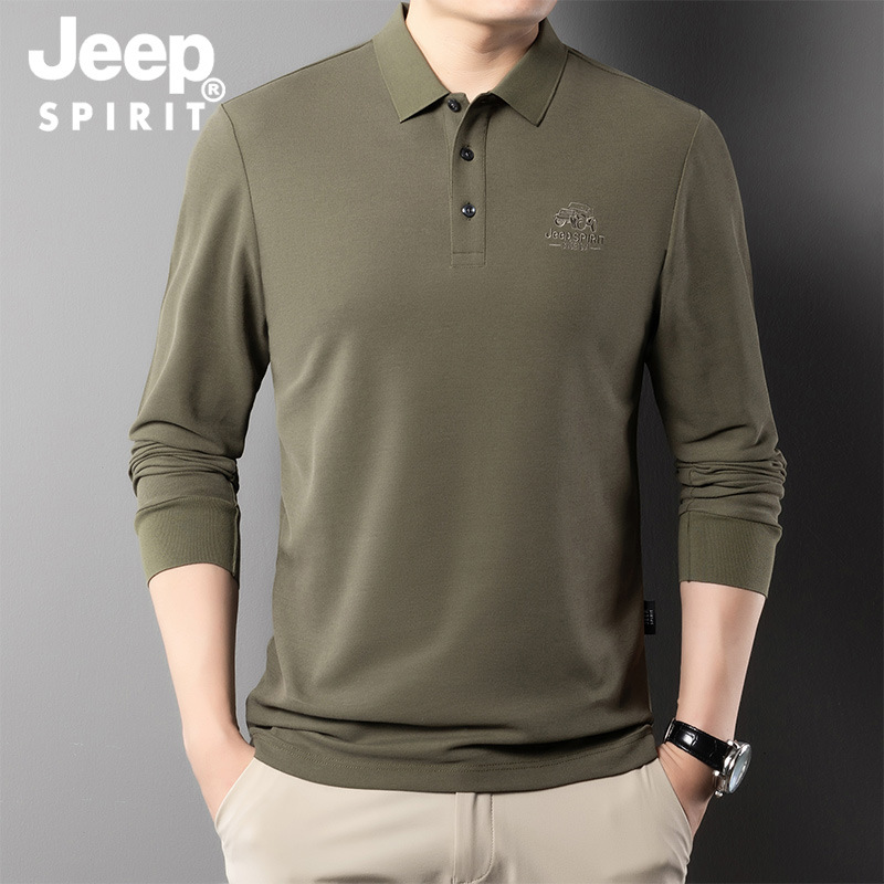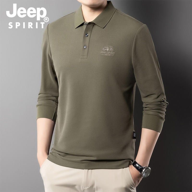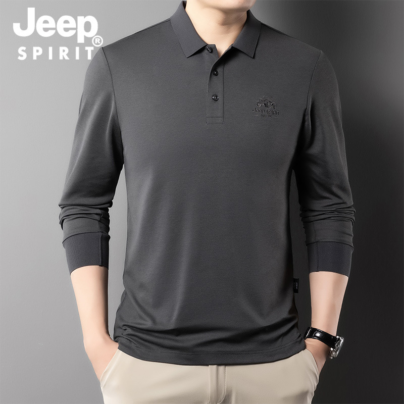 JEEP SPIRIT秋冬新品新款纯色中年爸爸男装长袖t恤jPolo衫休闲打底衫成熟HB-T8272